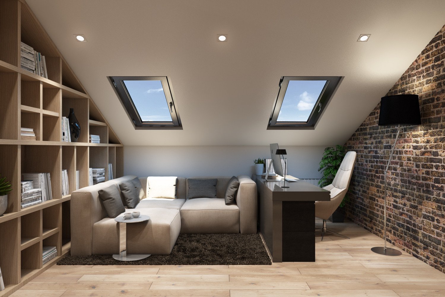 Кабинет на мансарде в стиле лофт