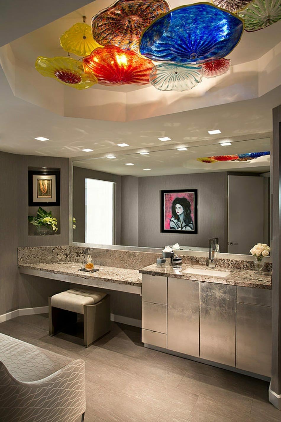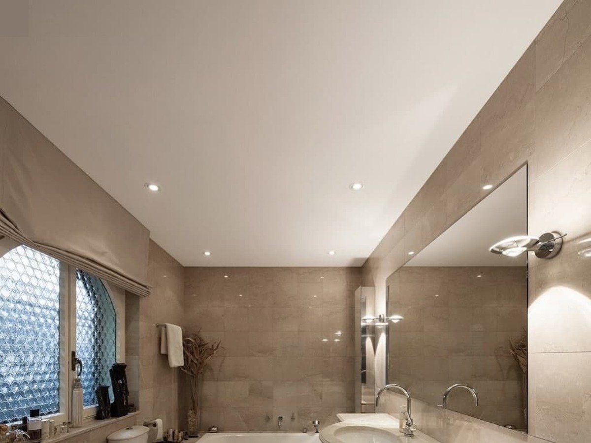 Потолок в ванной с точечными светильниками