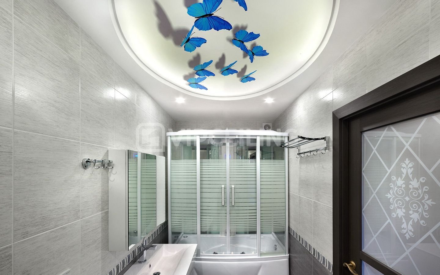 Дизайнерские потолки в ванной комнате