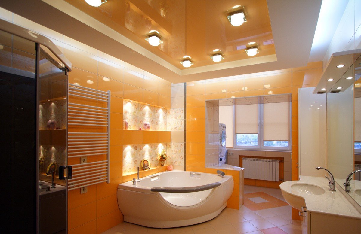 Цветной потолок в ванной