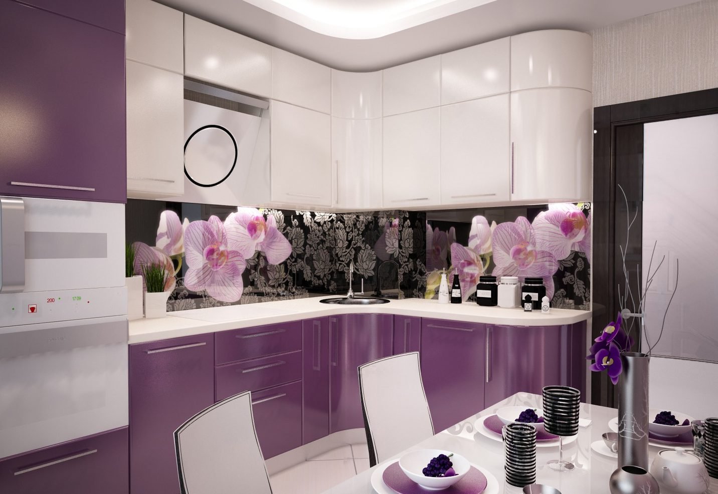 Кухни с фиолетовым стульями 16 кв м дизайн