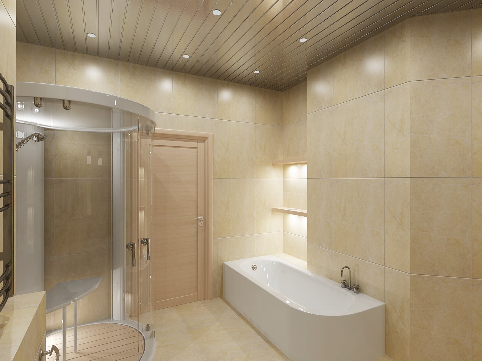 Интерьер потолка в ванной комнате