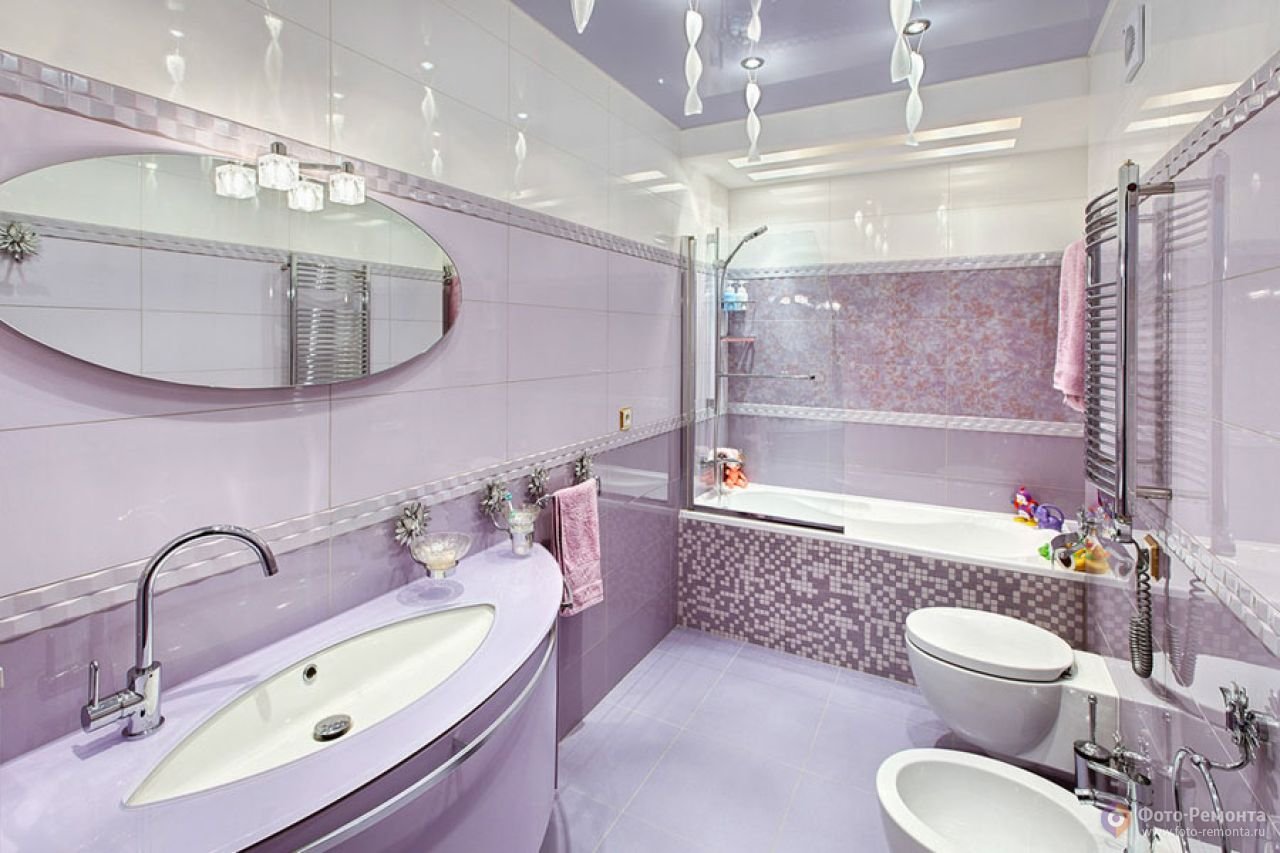 Красивая ванная комната сиреневая