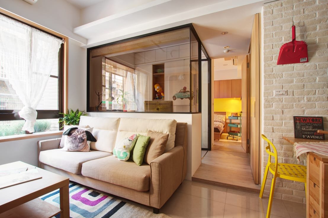 Интерьер комнаты в доме из кирпича 15 метров с тремя окнами