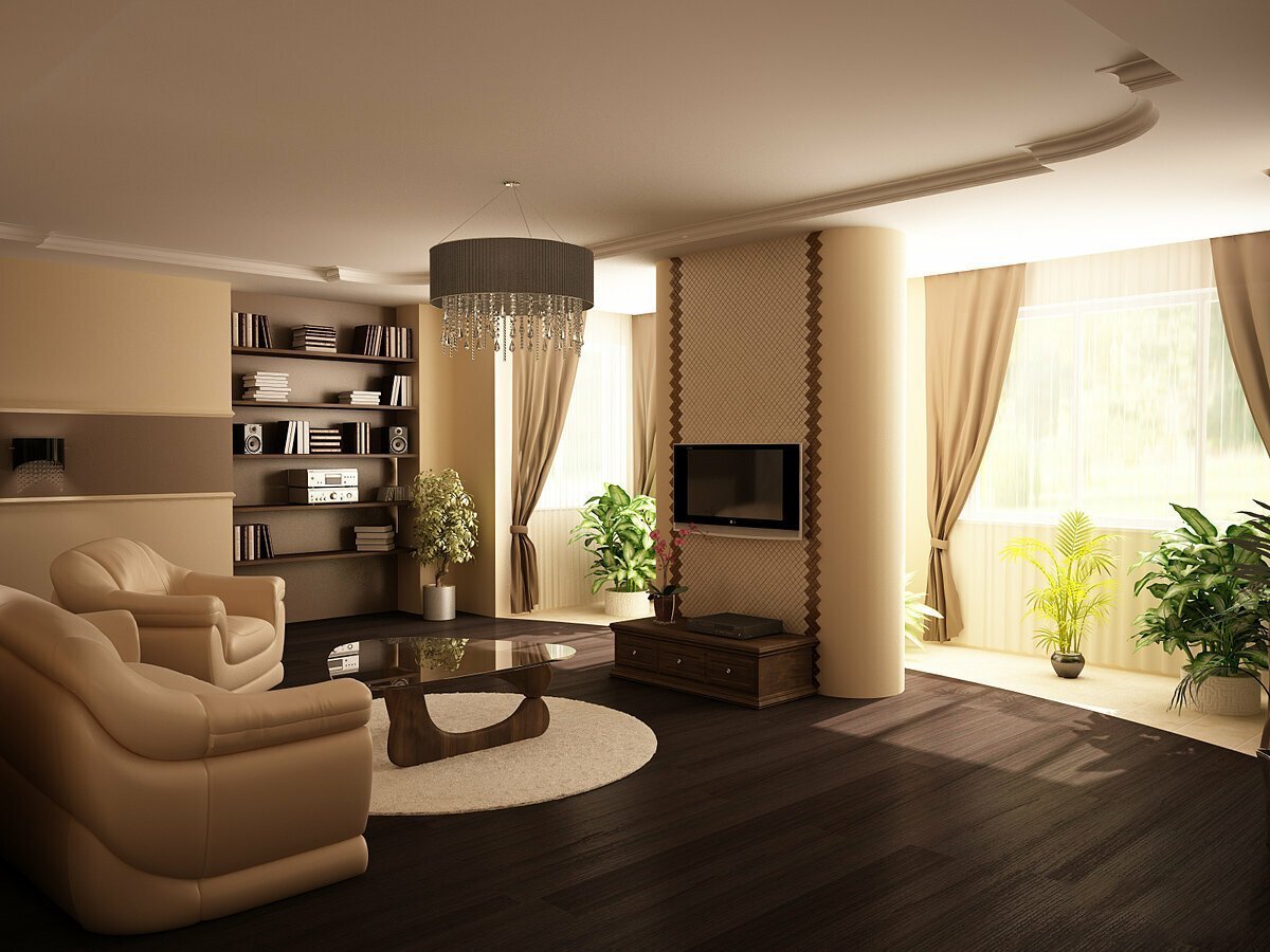Отделка гостиной комнаты в частном доме