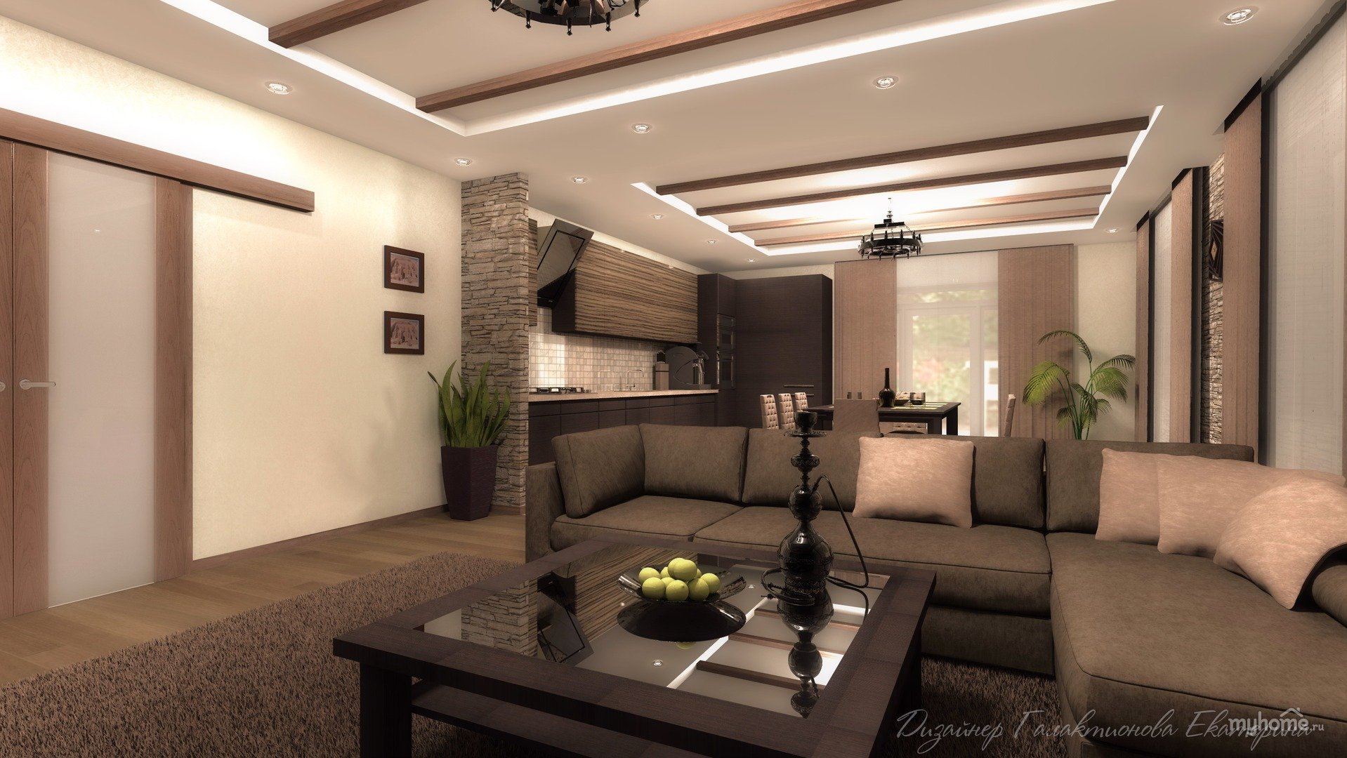 Интерьер потолков в гостиной