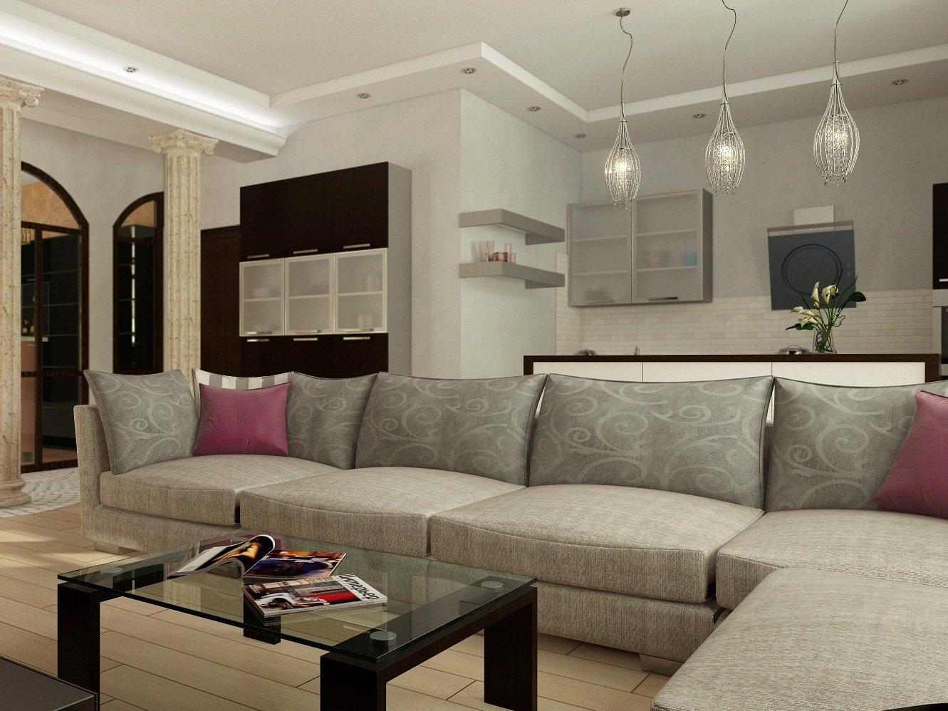Гостиная с большим угловым диваном