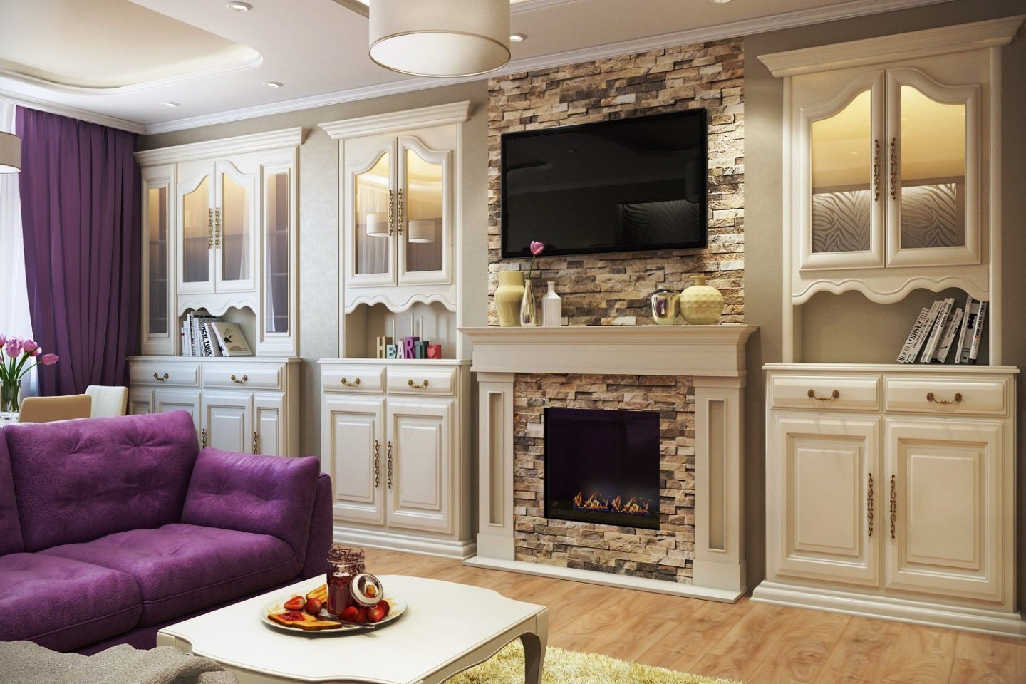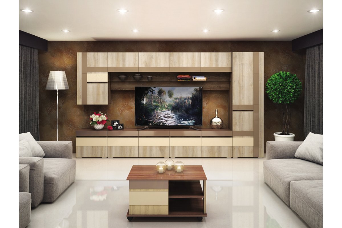 Бежевая стенка в гостиную
