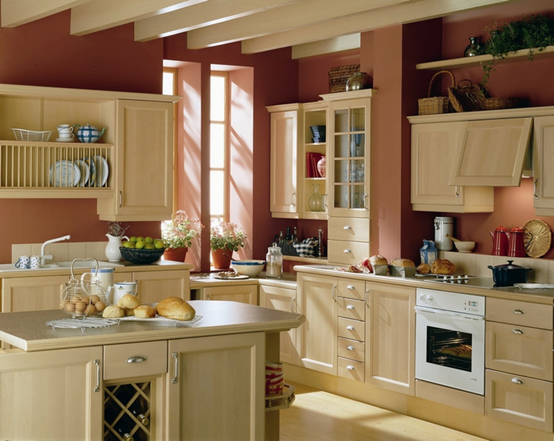 Обои для красной кухни в интерьере