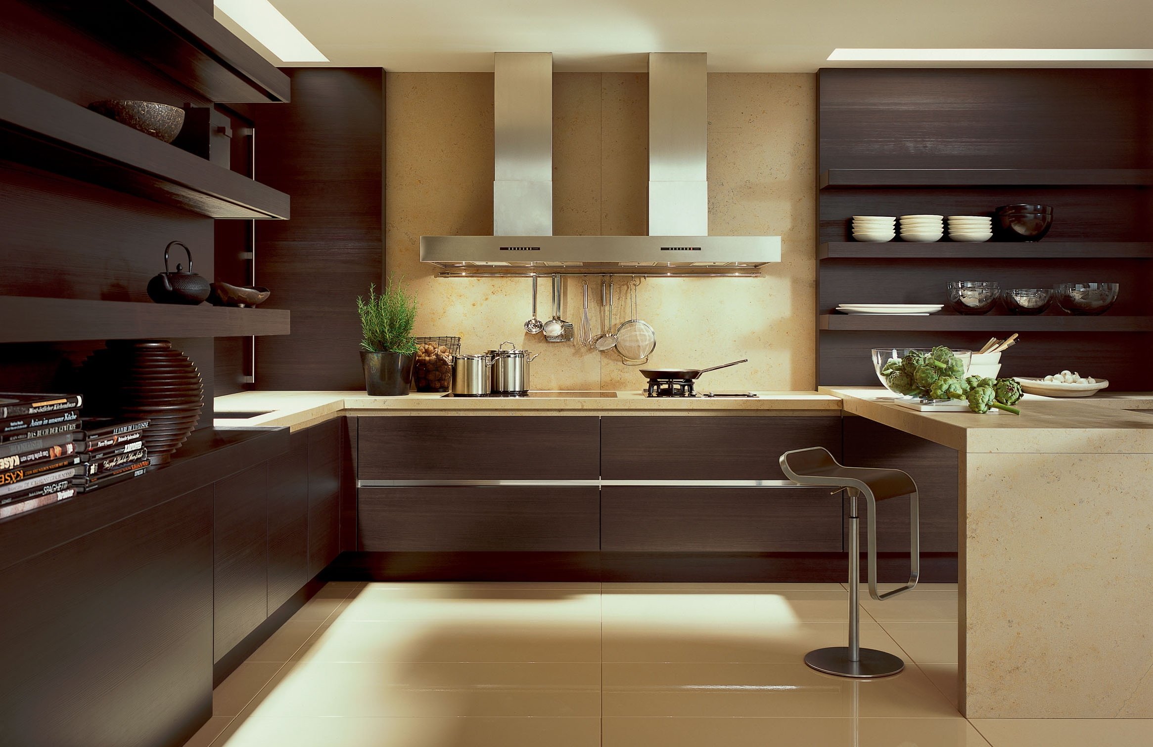 Интерьеры кухни в коричнево-перламутровых тонах