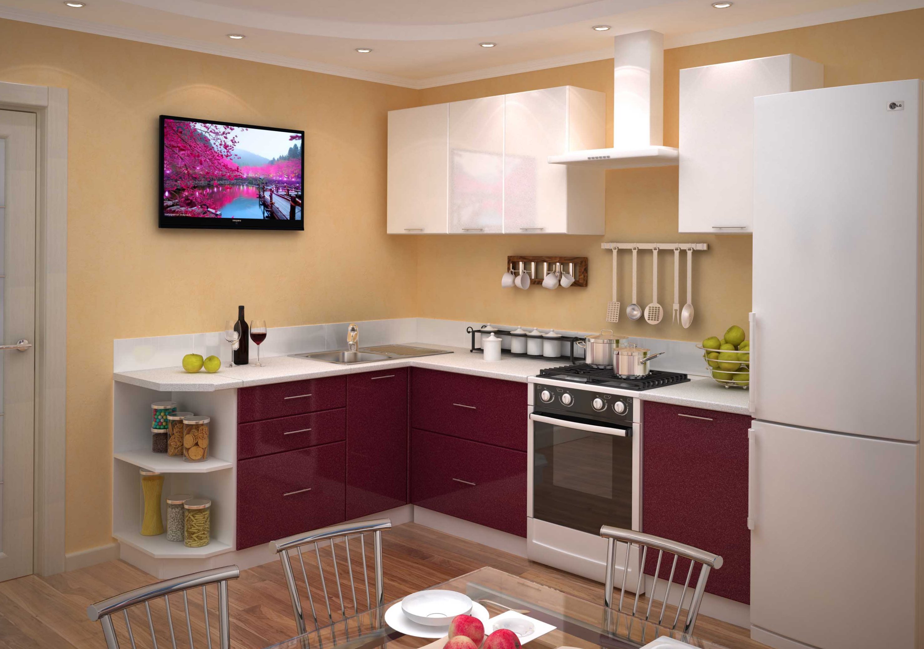 Угловая кухня с ТВ зоной