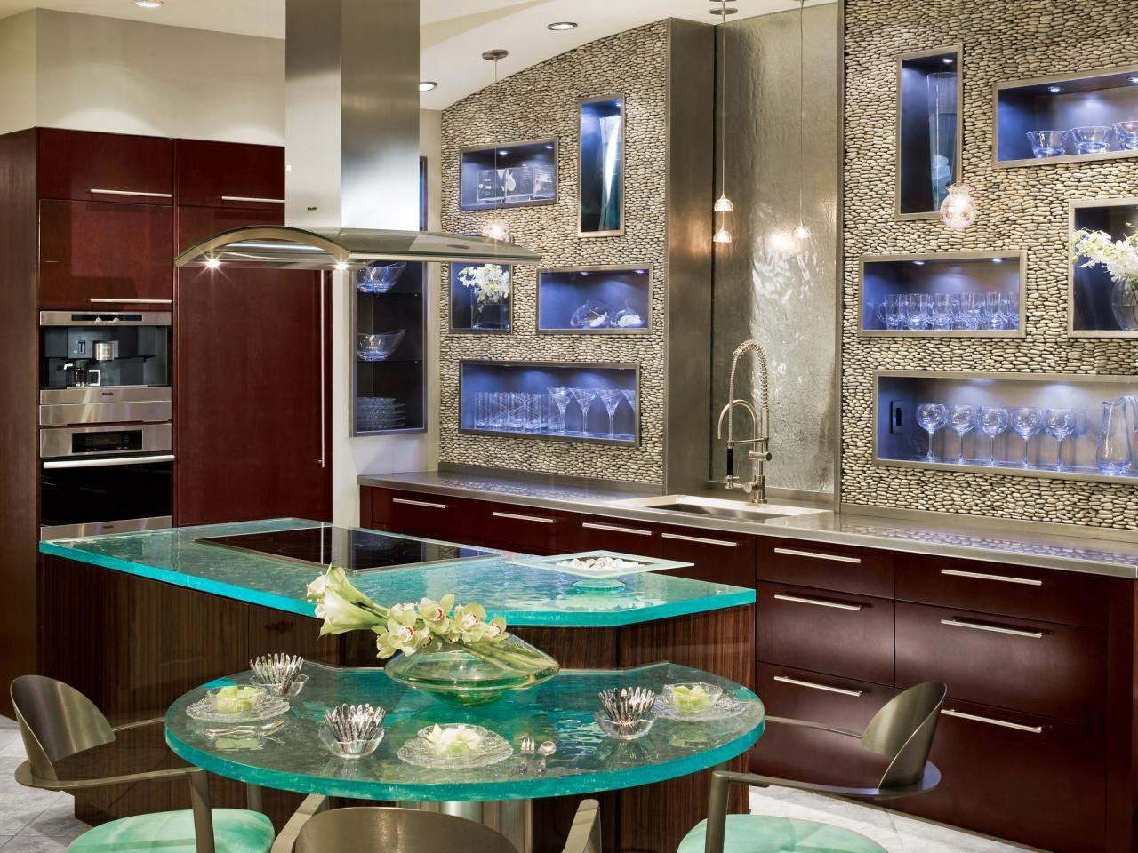 Кухня со стеклянными полками