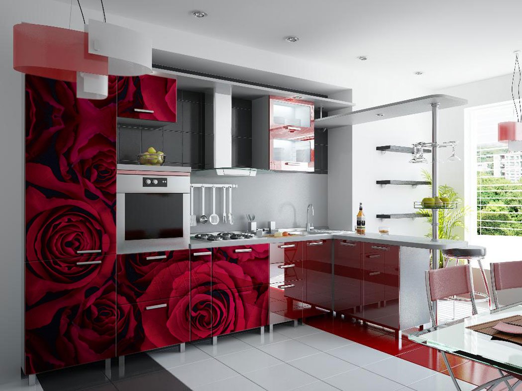 Красивые кухни красного цвета