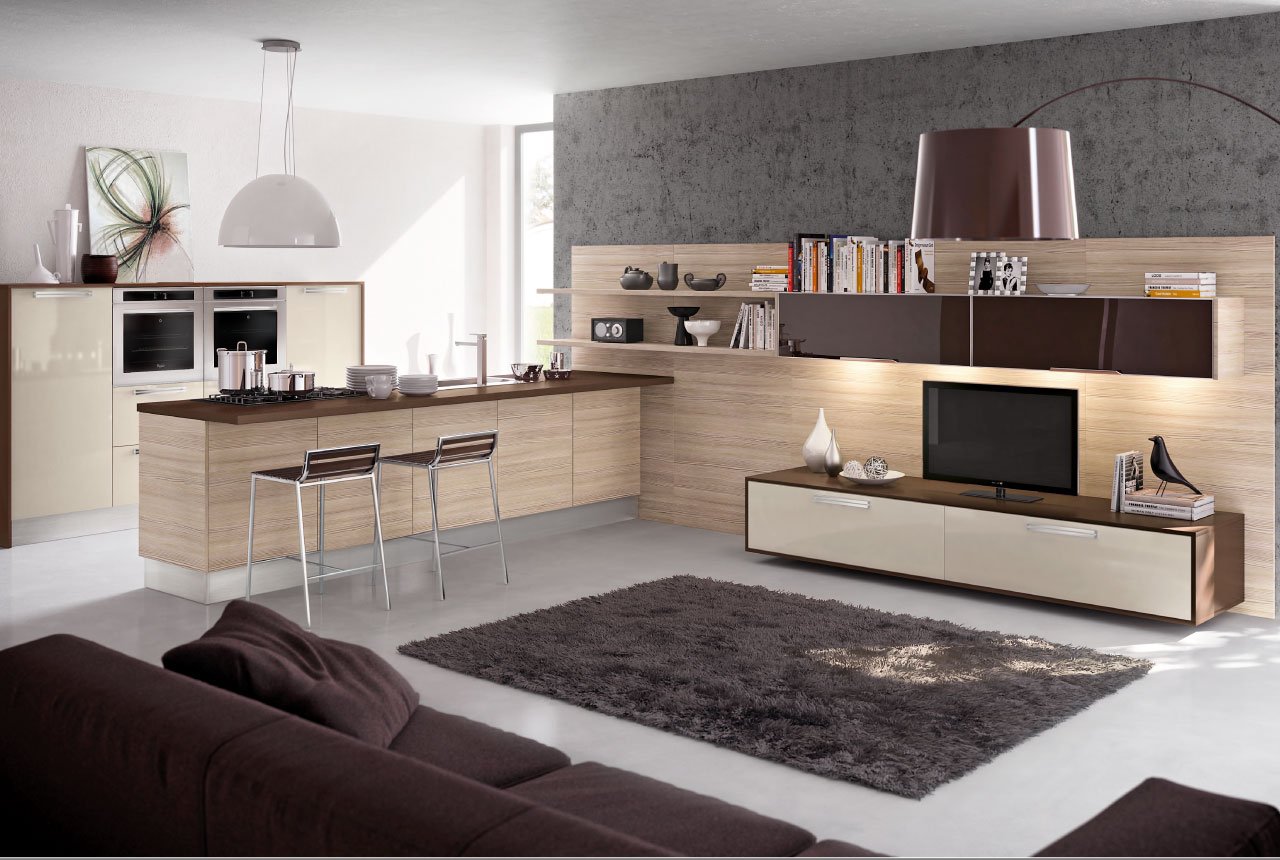 Кухонный гарнитур переходящий в гостиную