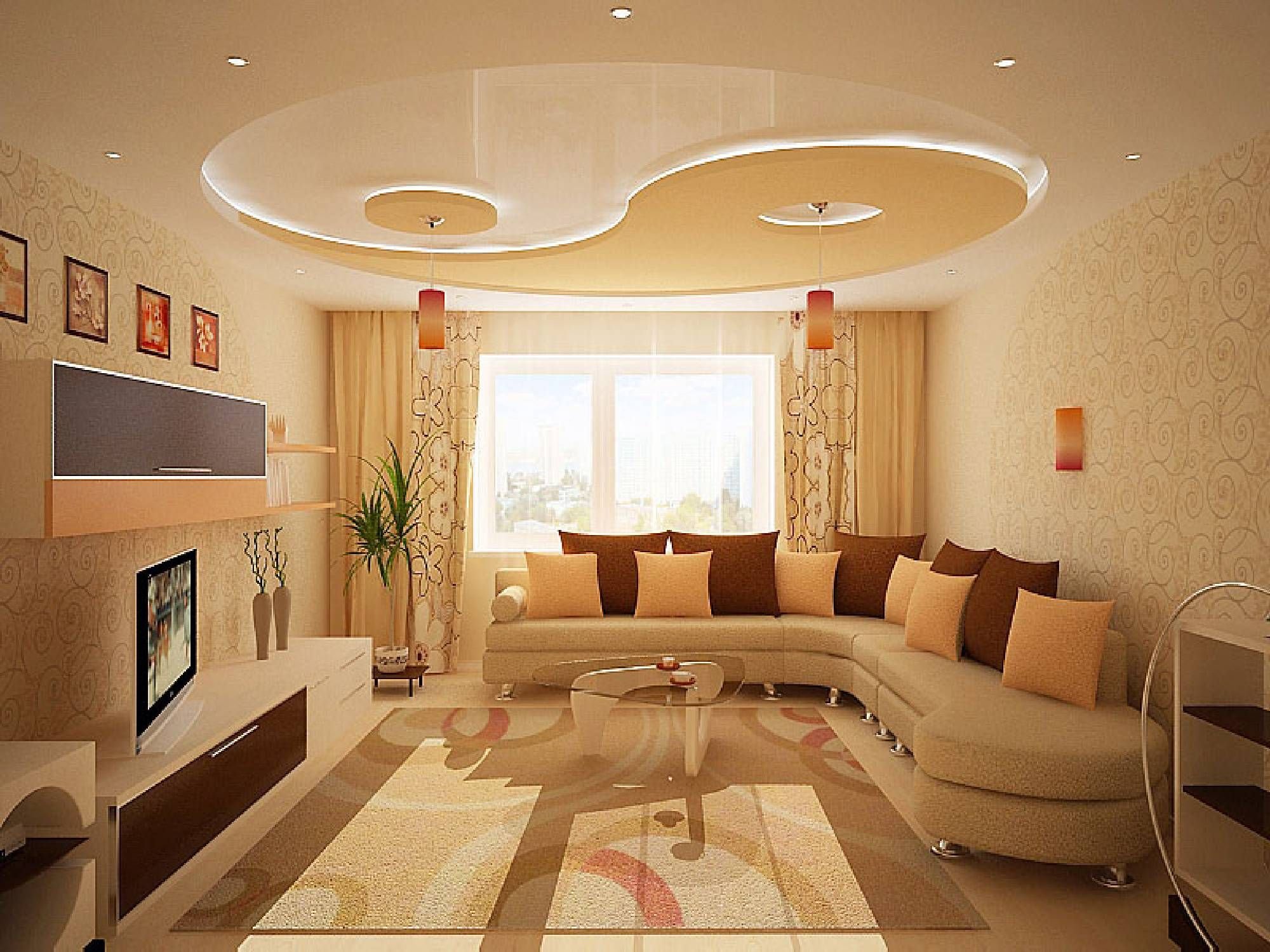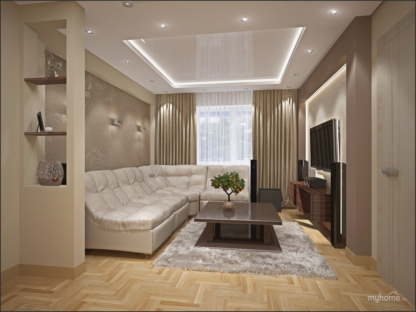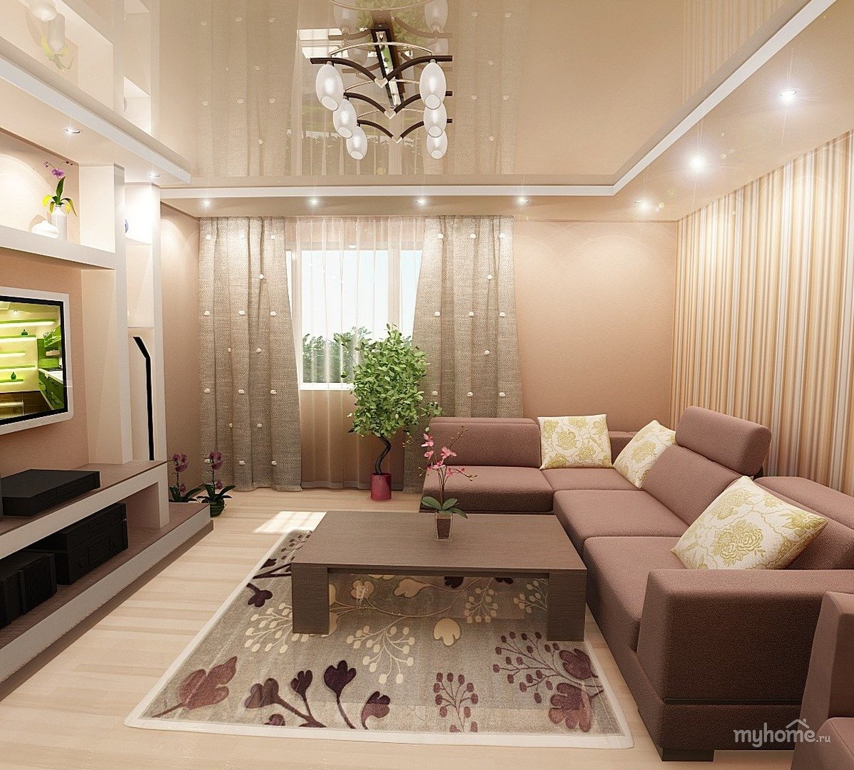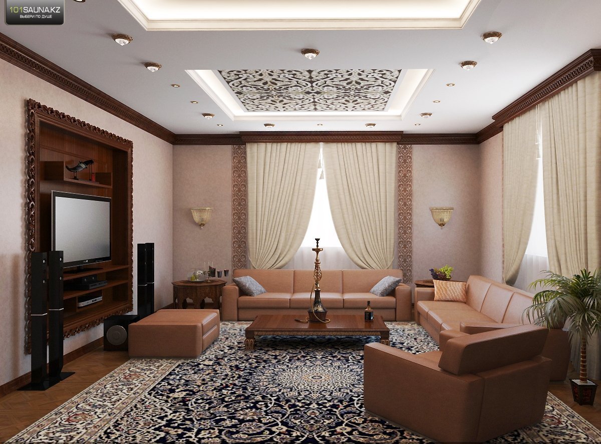 Красивый потолок в гостиной