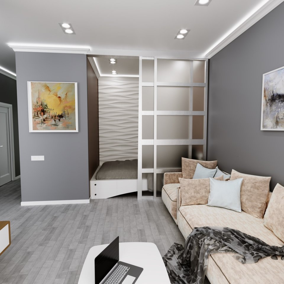 Дизайн комнаты с нишей в однокомнатной квартире зонирование