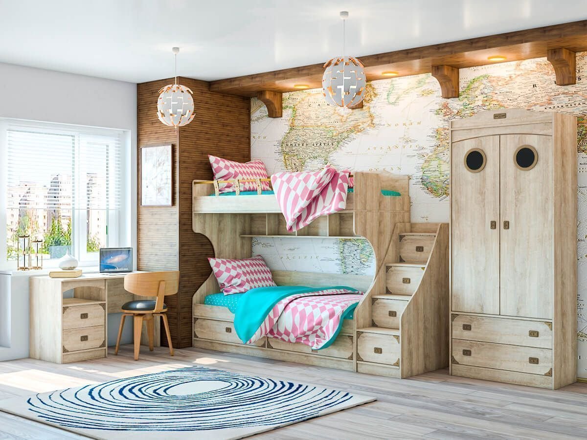 Детская комната с деревянной мебелью