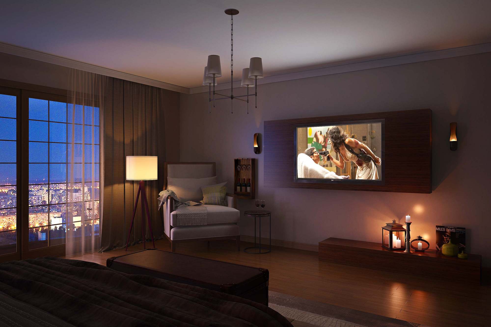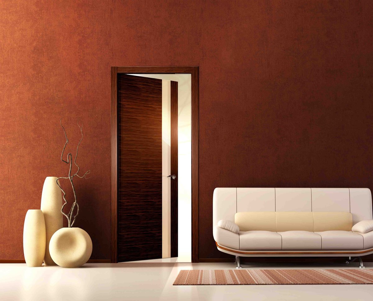 Дверь венге межкомнатная в интерьере с ламинатом Кастелло 4282