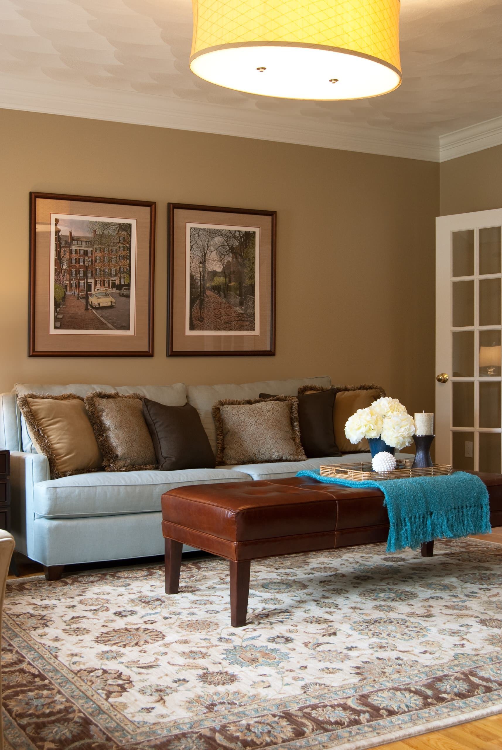 Гостиная в коричнево голубых тонах