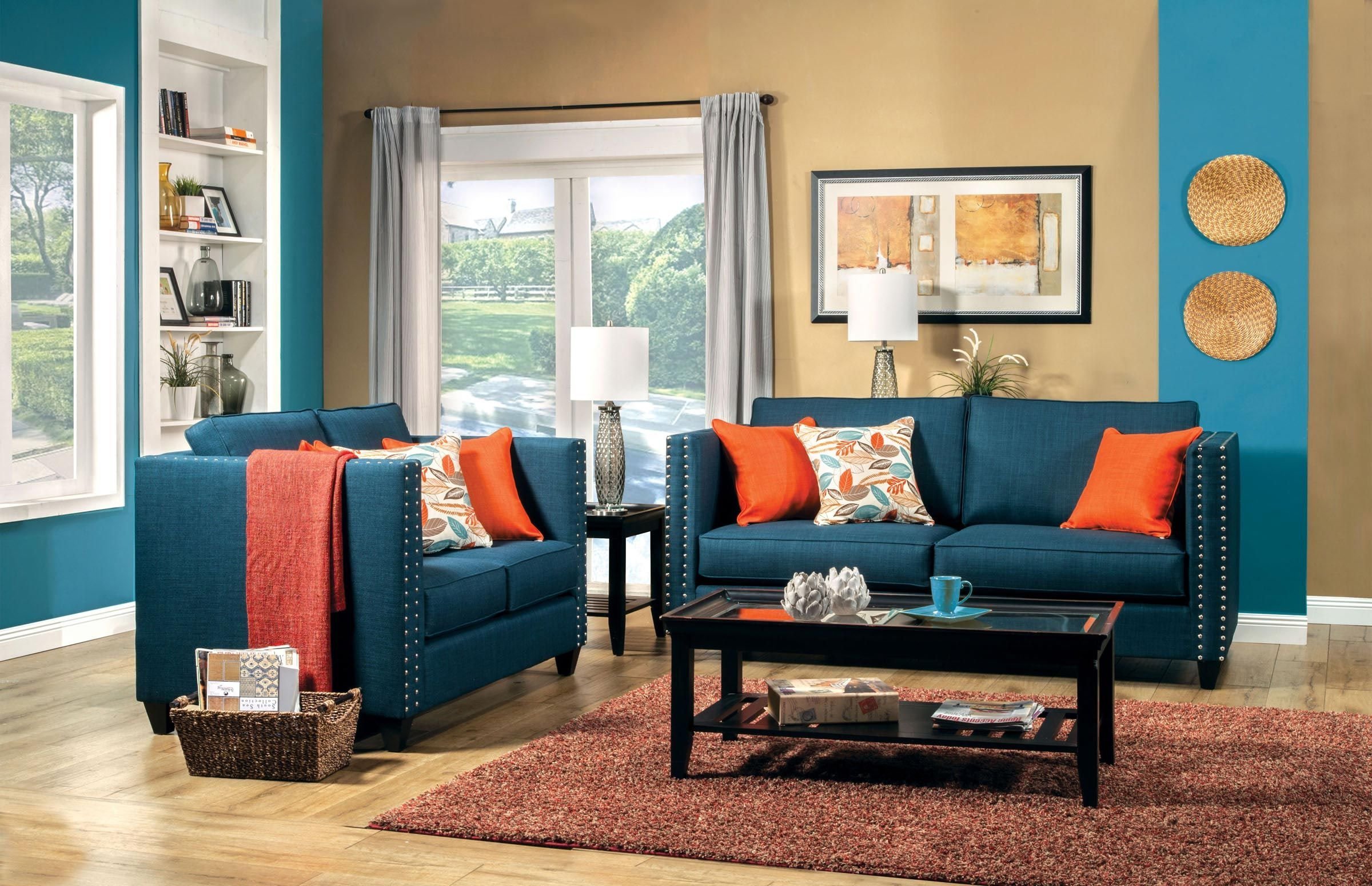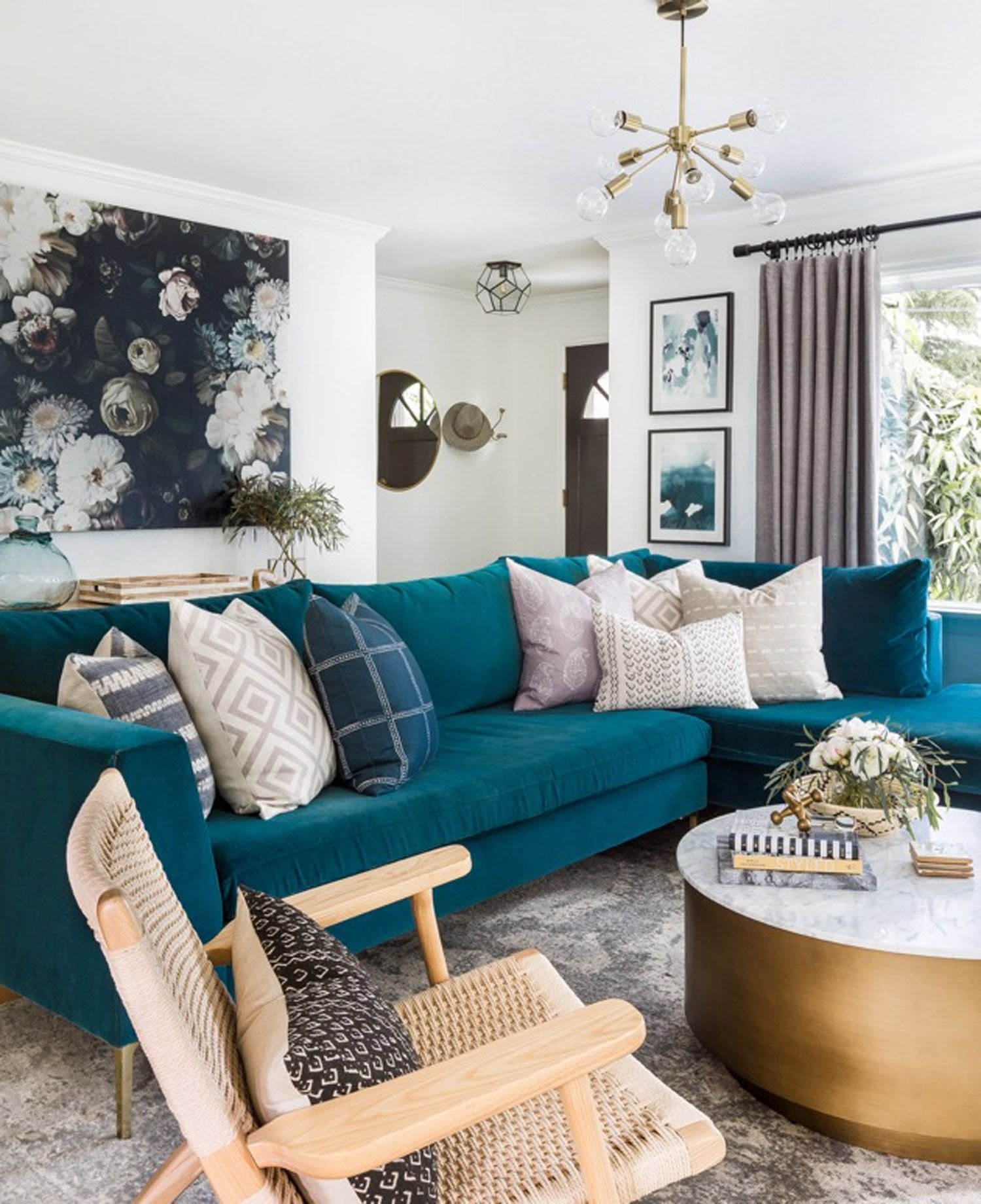 Гостиная с бирюзовым диваном