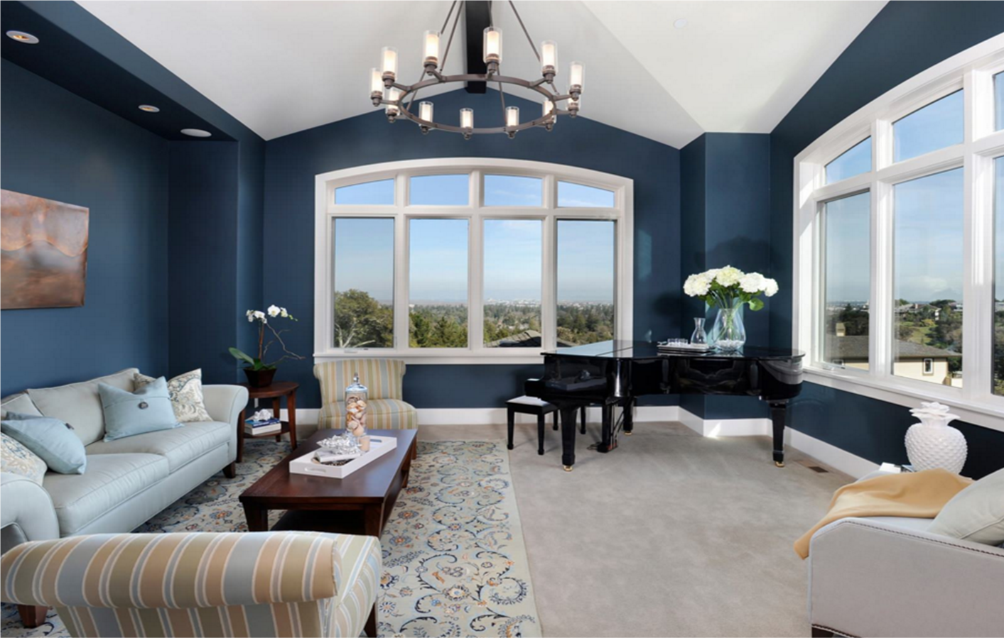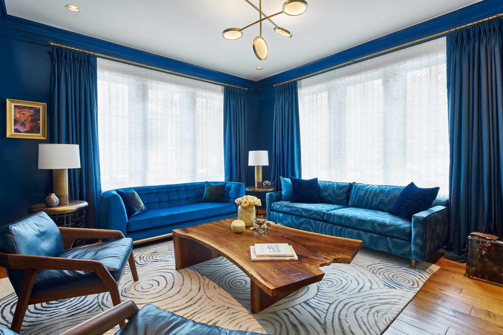 Синие стены в интерьере гостиной
