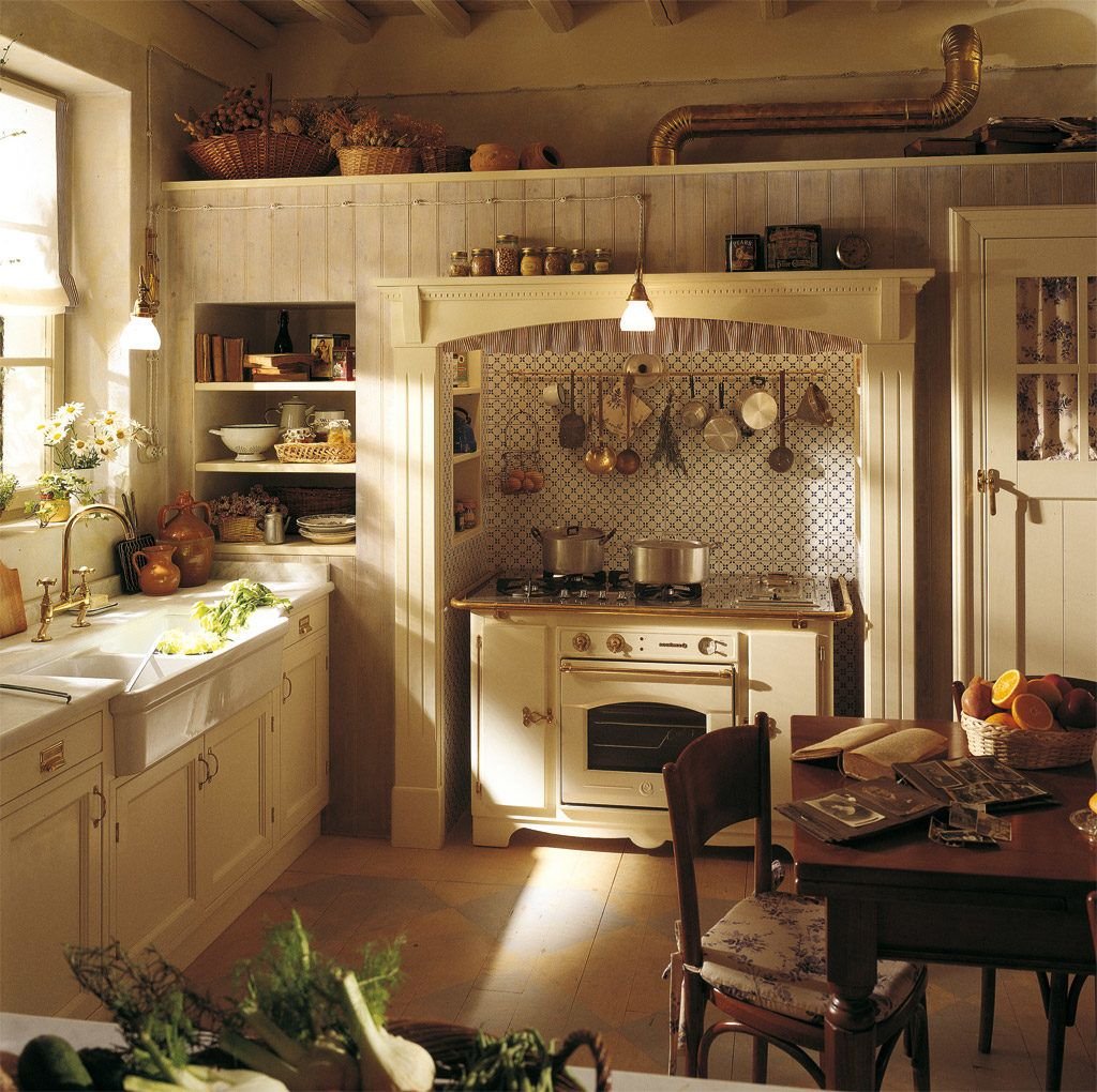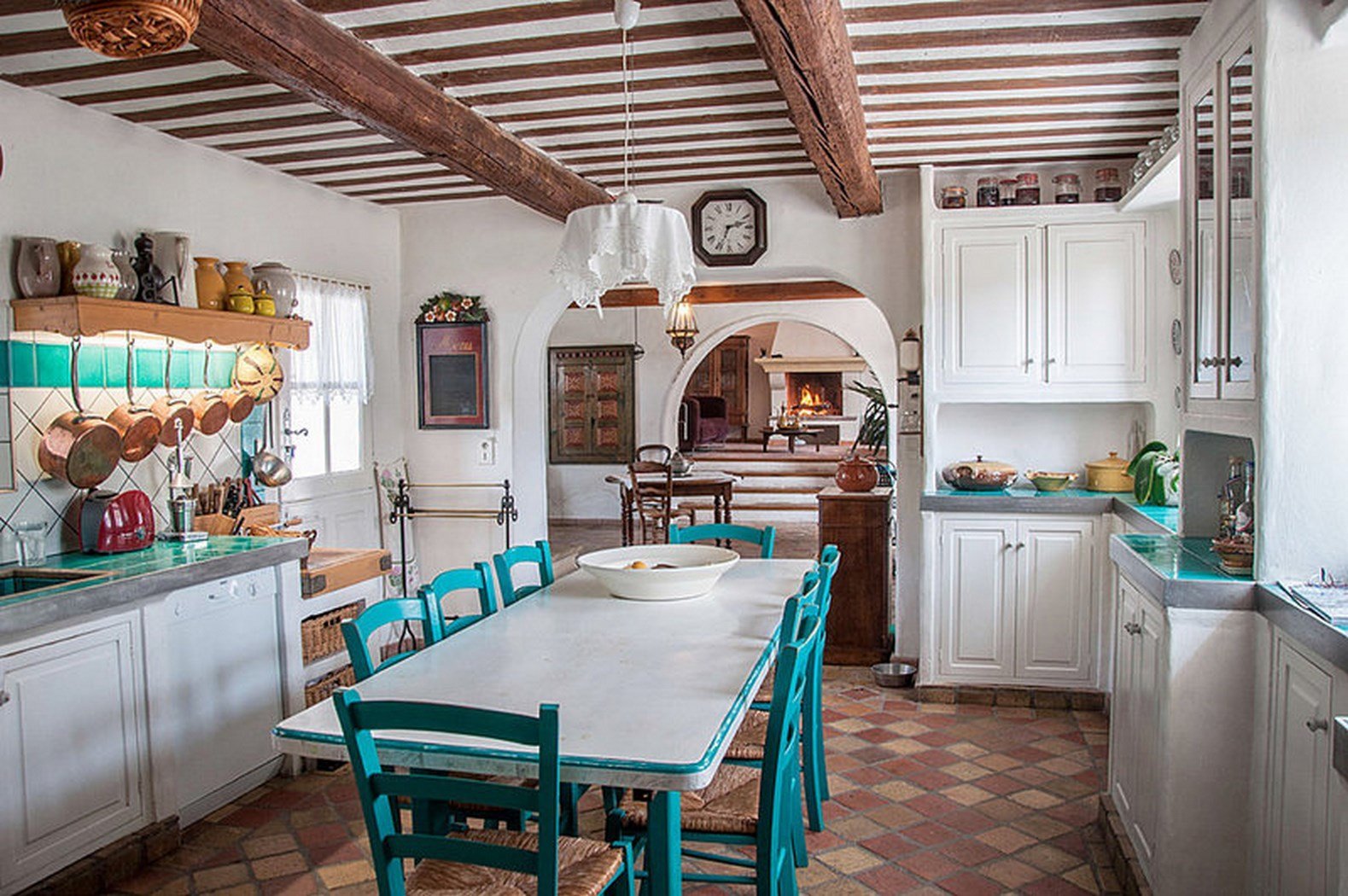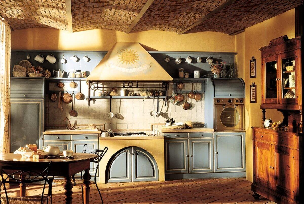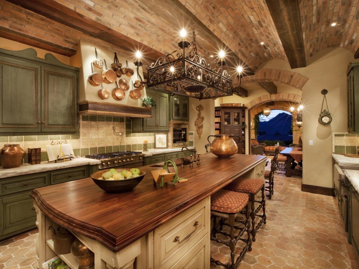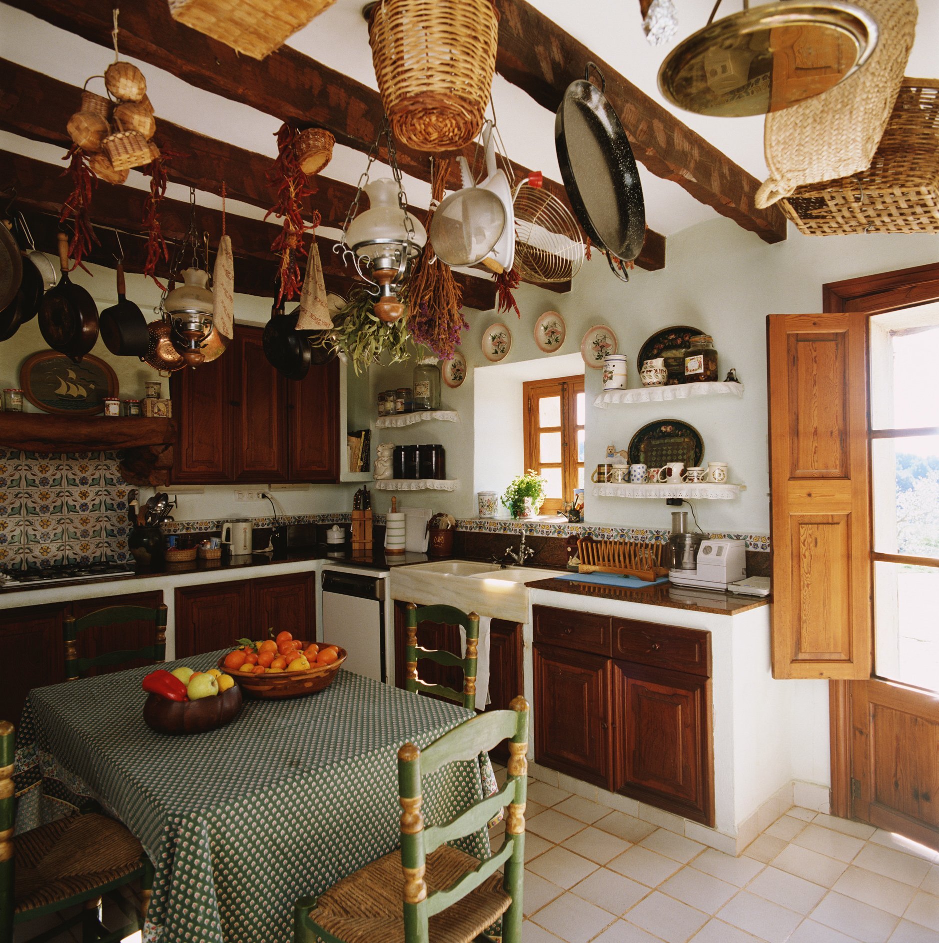 Интерьер кухни в итальянском и Тосканском испанском Кантри
