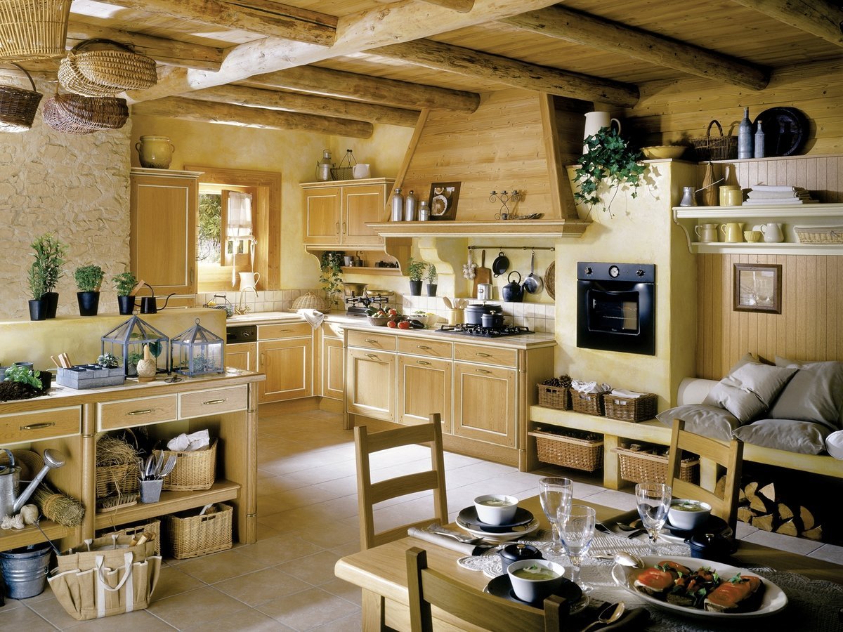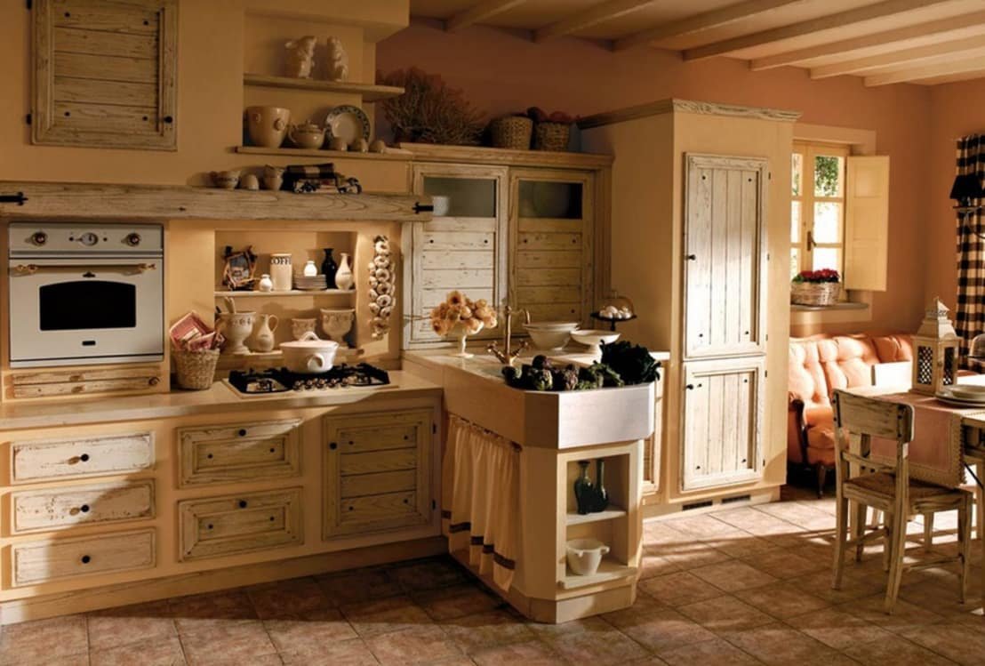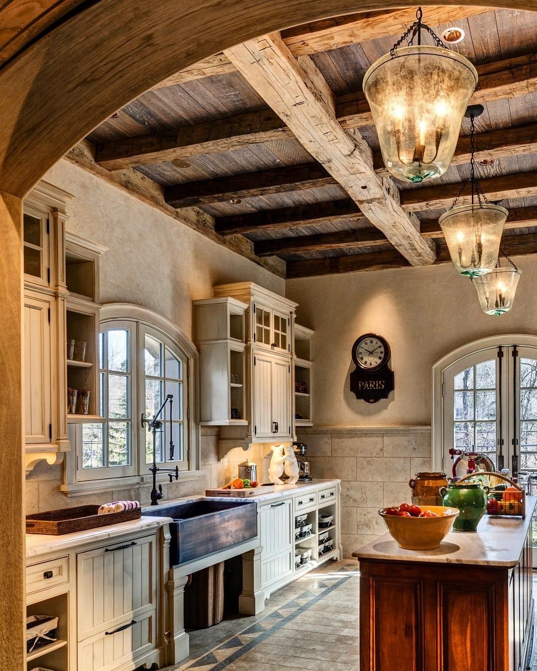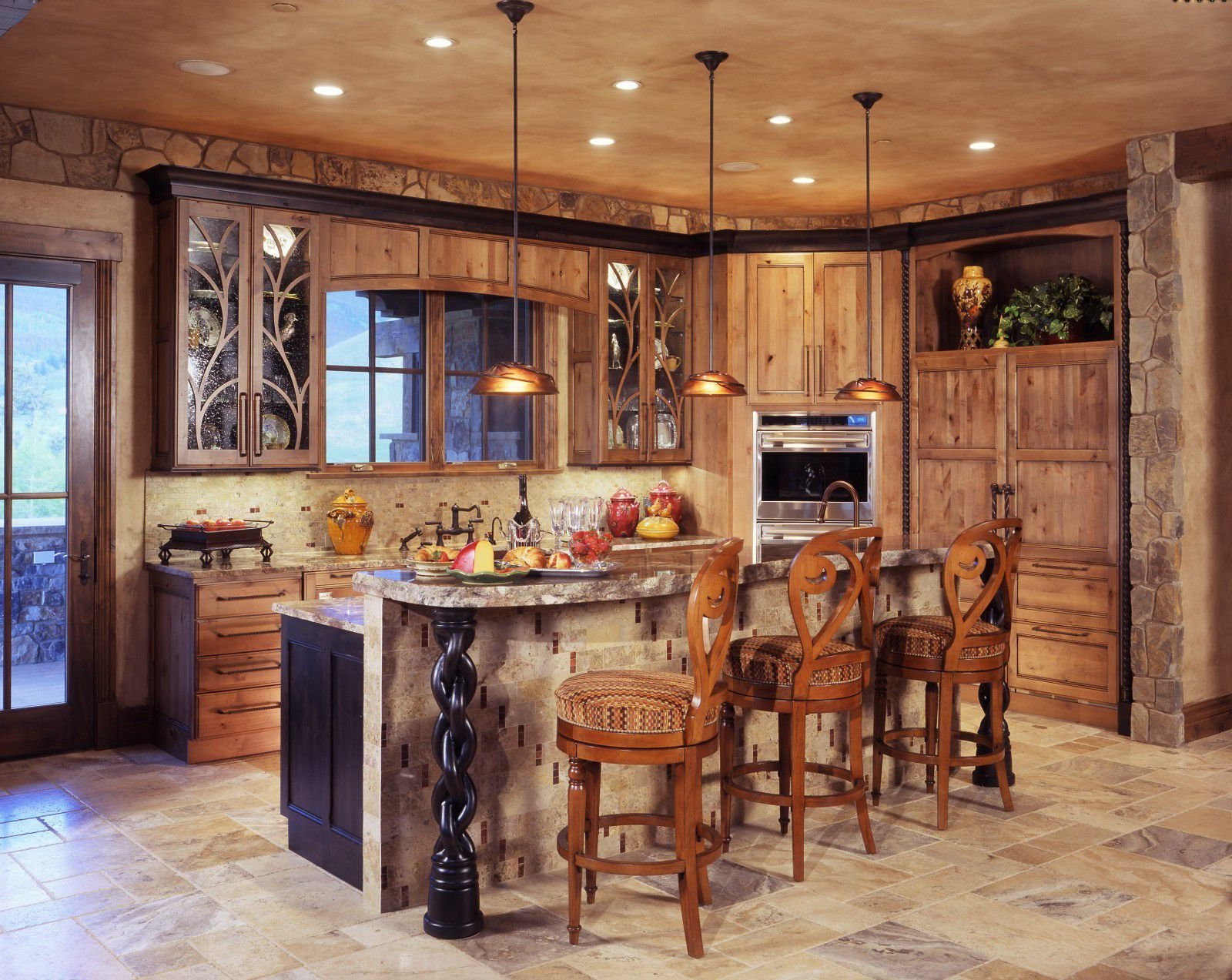 Интерьер кухни в итальянском и Тосканском испанском Кантри