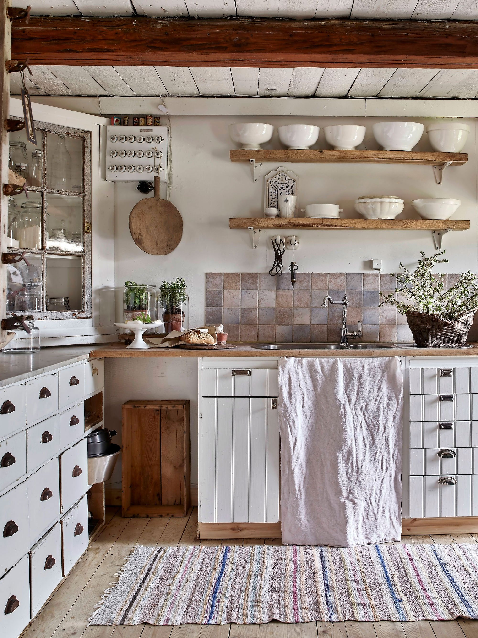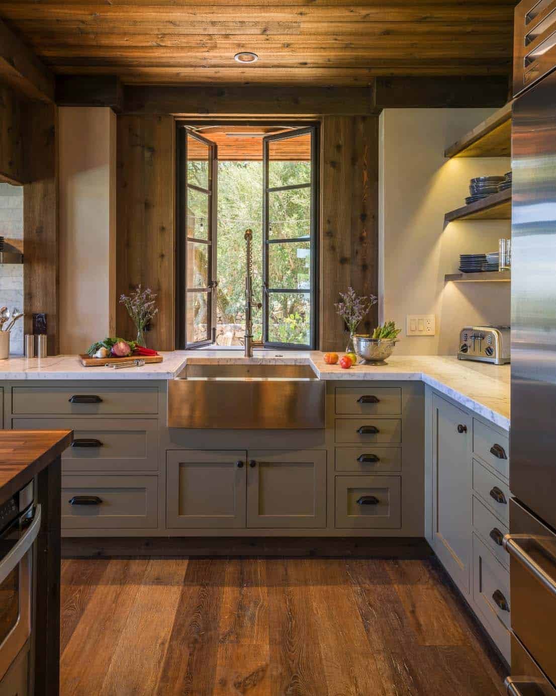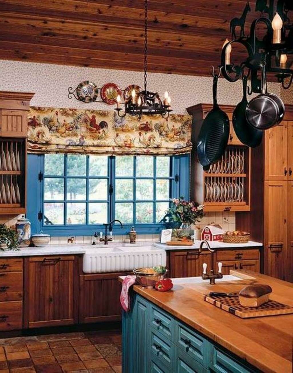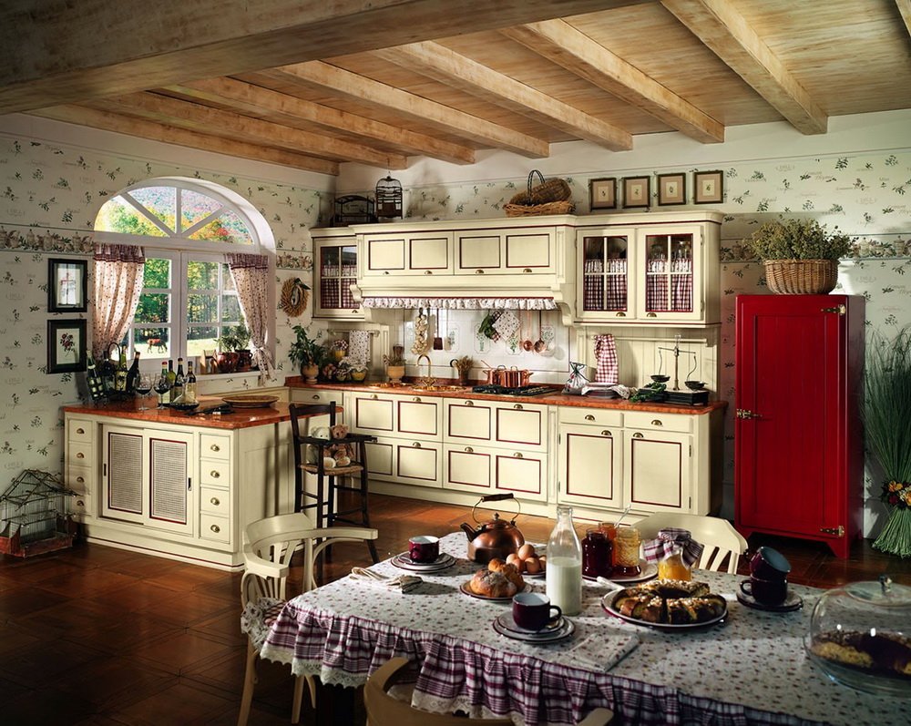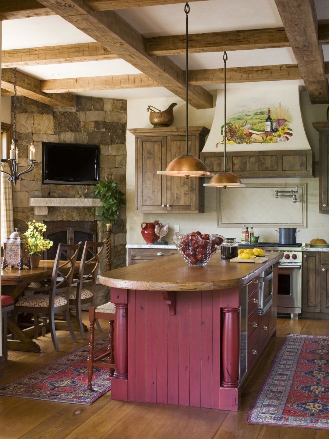 Интерьер кухни в итальянском и Тосканском испанском Кантри