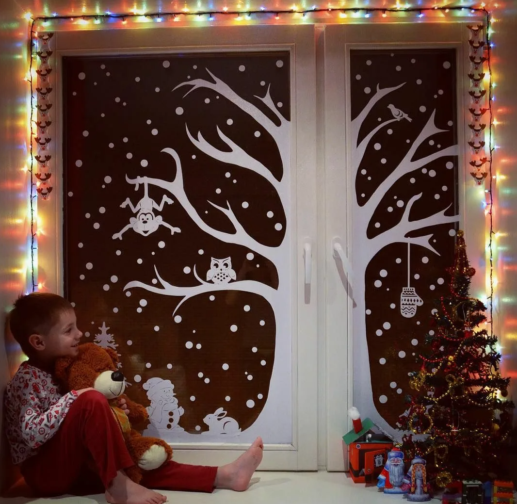 Наклейка для окон арт узор "елочные украшения", 50 х 70 см