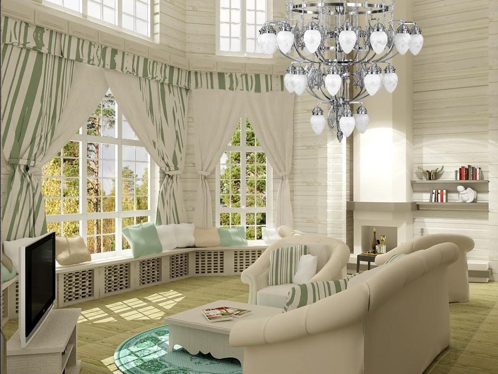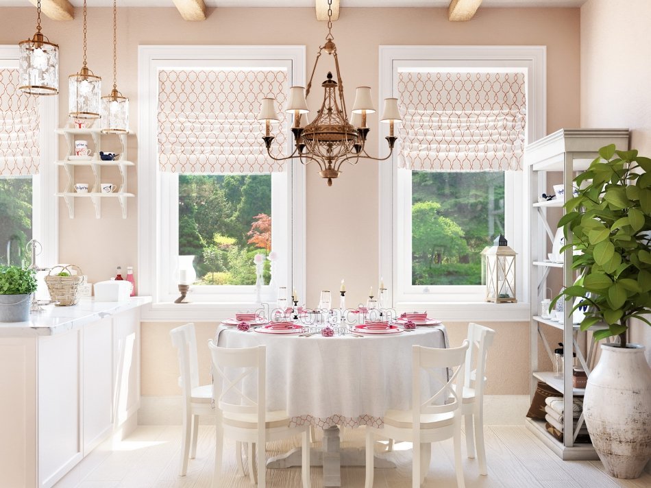 Шторы в стиле Прованс для гостиной совмещенной с кухней