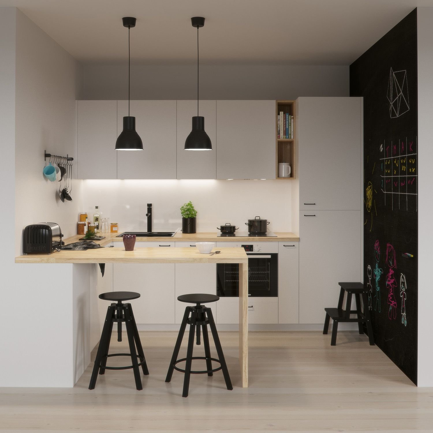 Маленькая кухня в скандинавском стиле в студии