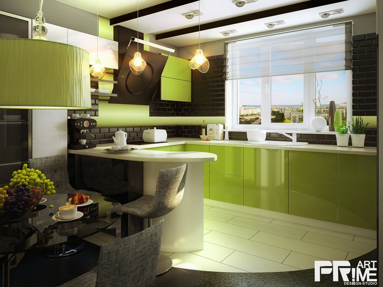 Кухня гостиная в зеленом цвете