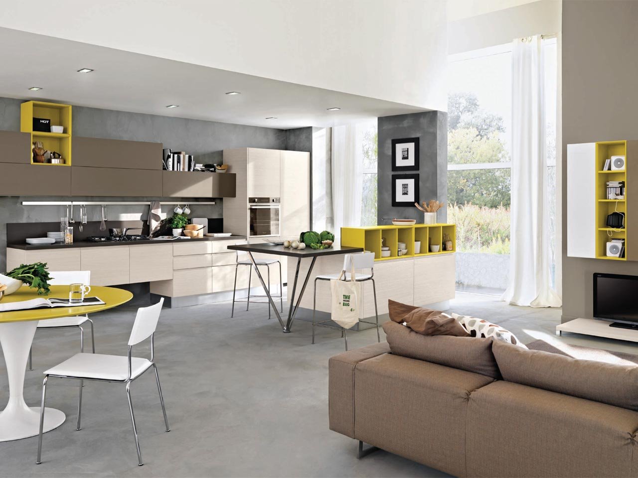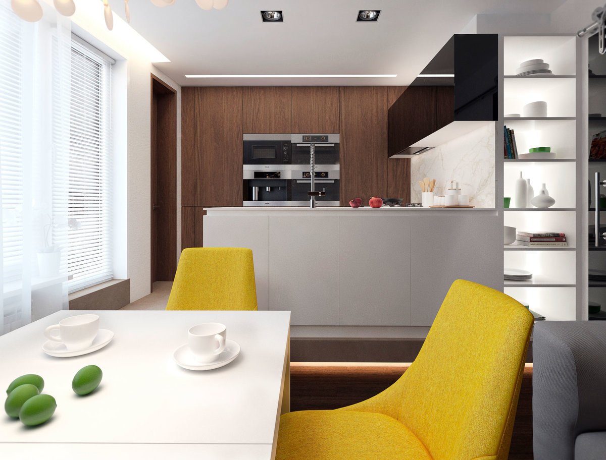 Кухня-гостиная в желтых тонах