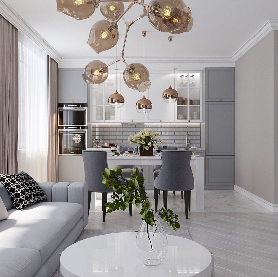 Кухня гостиная в светлых тонах