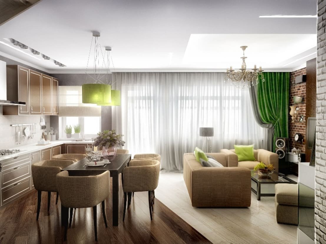 Цветовые решения для кухни гостиной (59 фото)