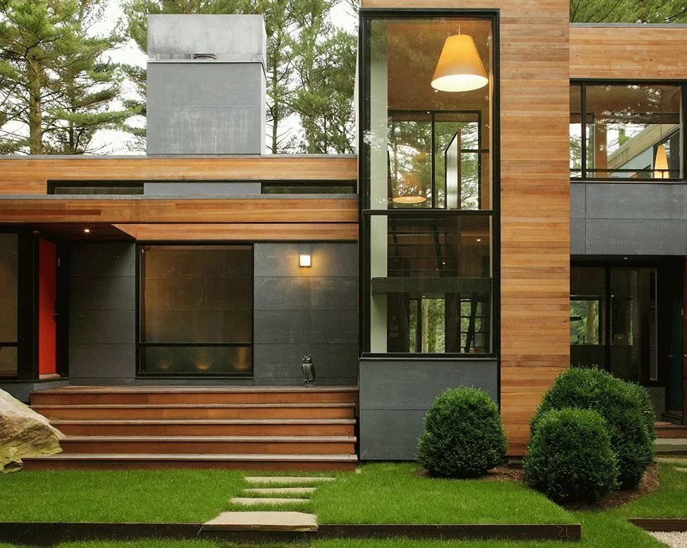 Деревянные фасады домов в современном стиле