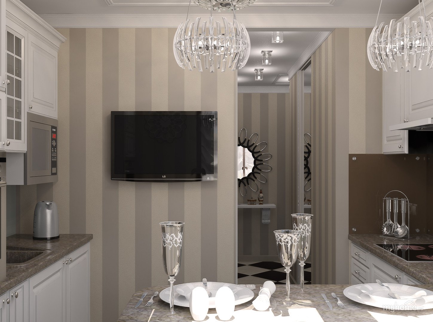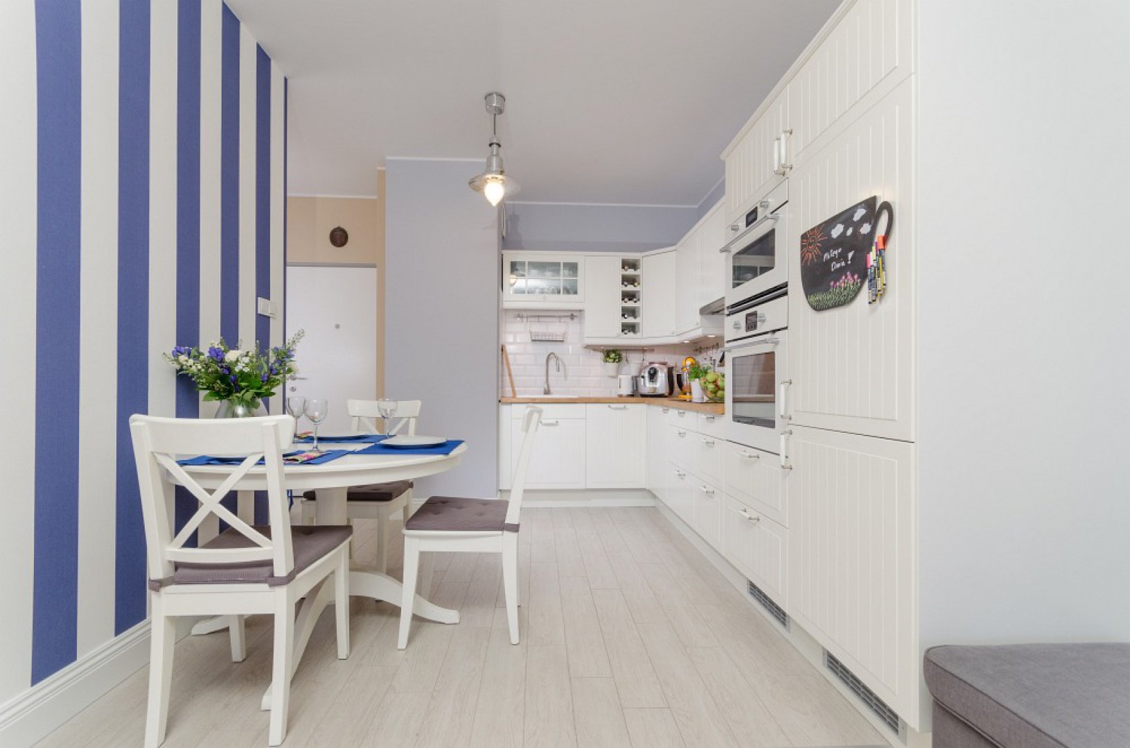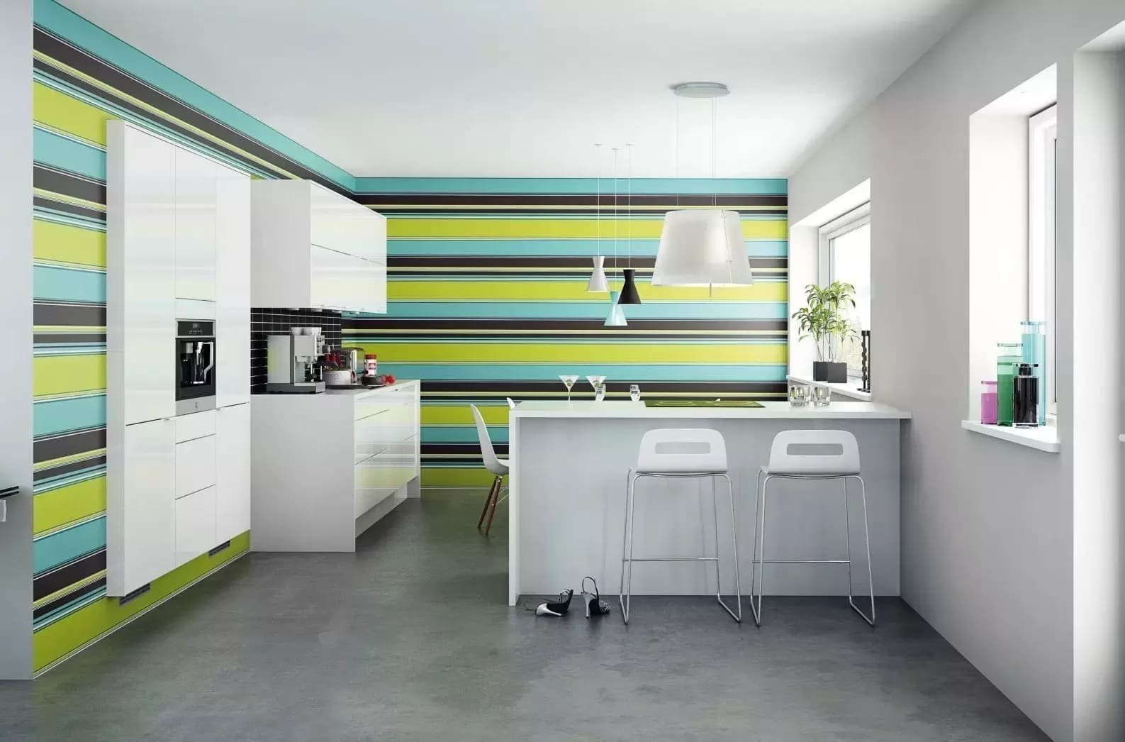 Полосатые стены на кухне