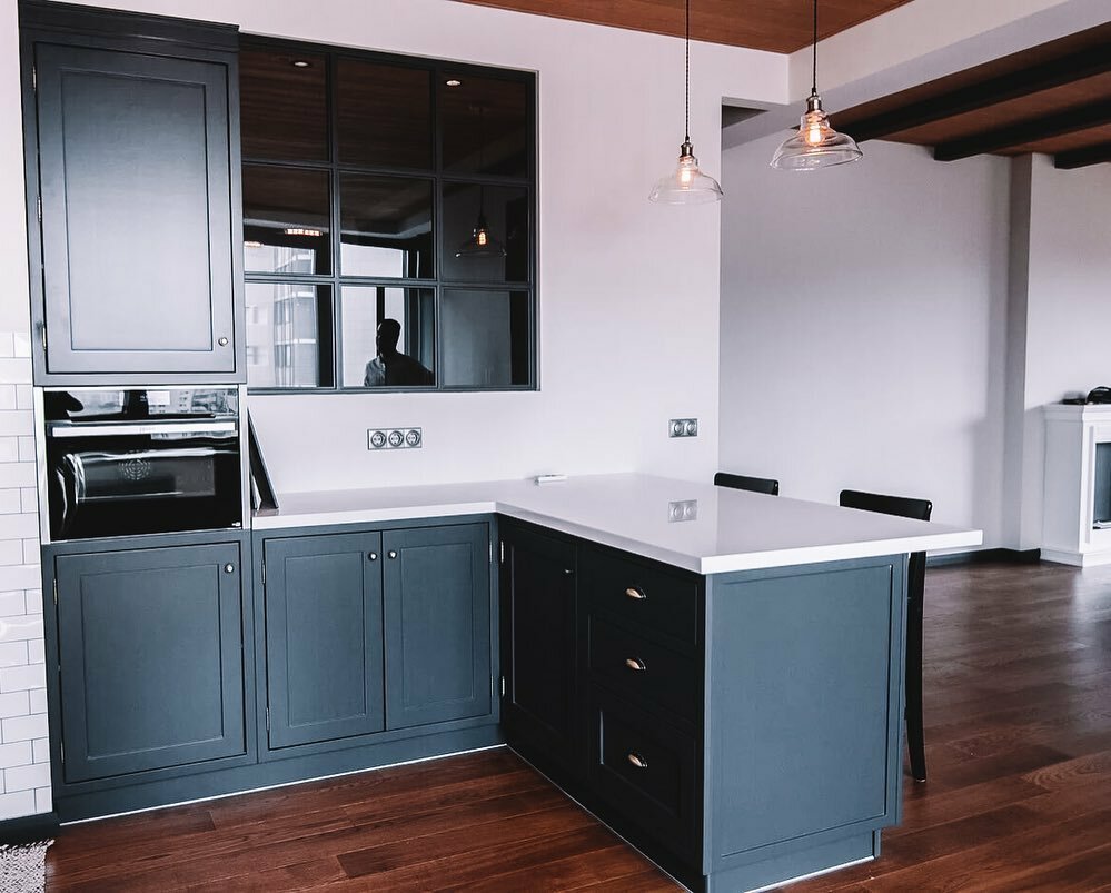 Кухня из МДФ Крашеного «Орион» NCS s3005-g50y матовый/RAL 9003