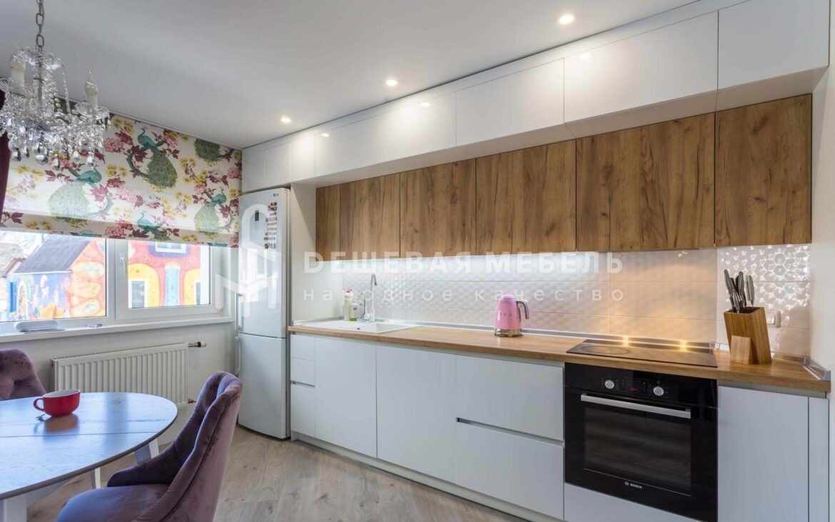 Кухня белая с деревом