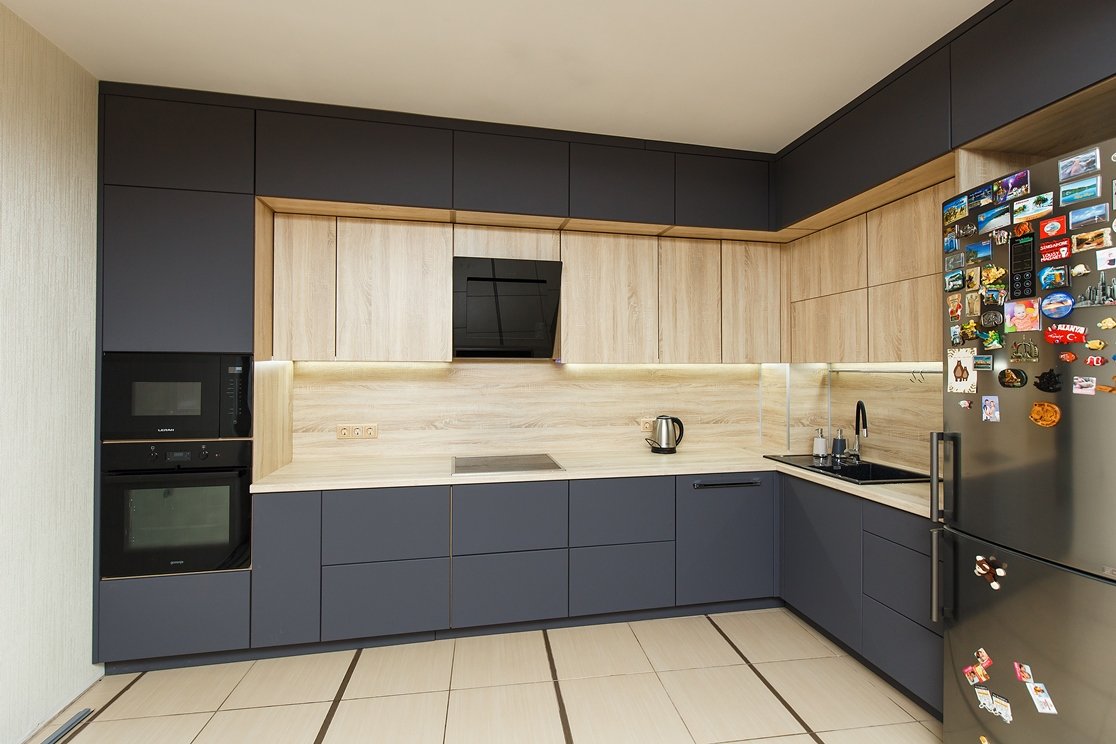 Кухонный гарнитур светлый верх темный низ