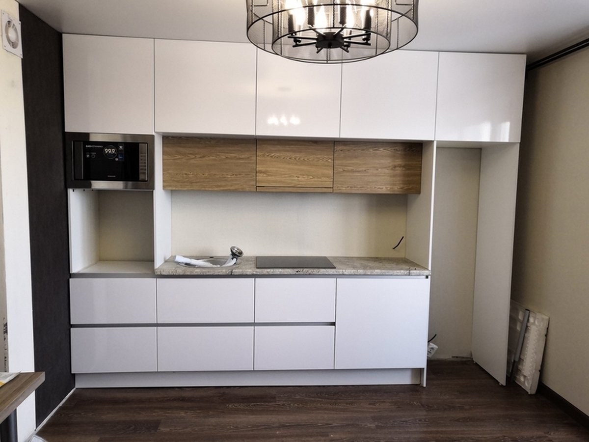 Прямая кухня с антресолями