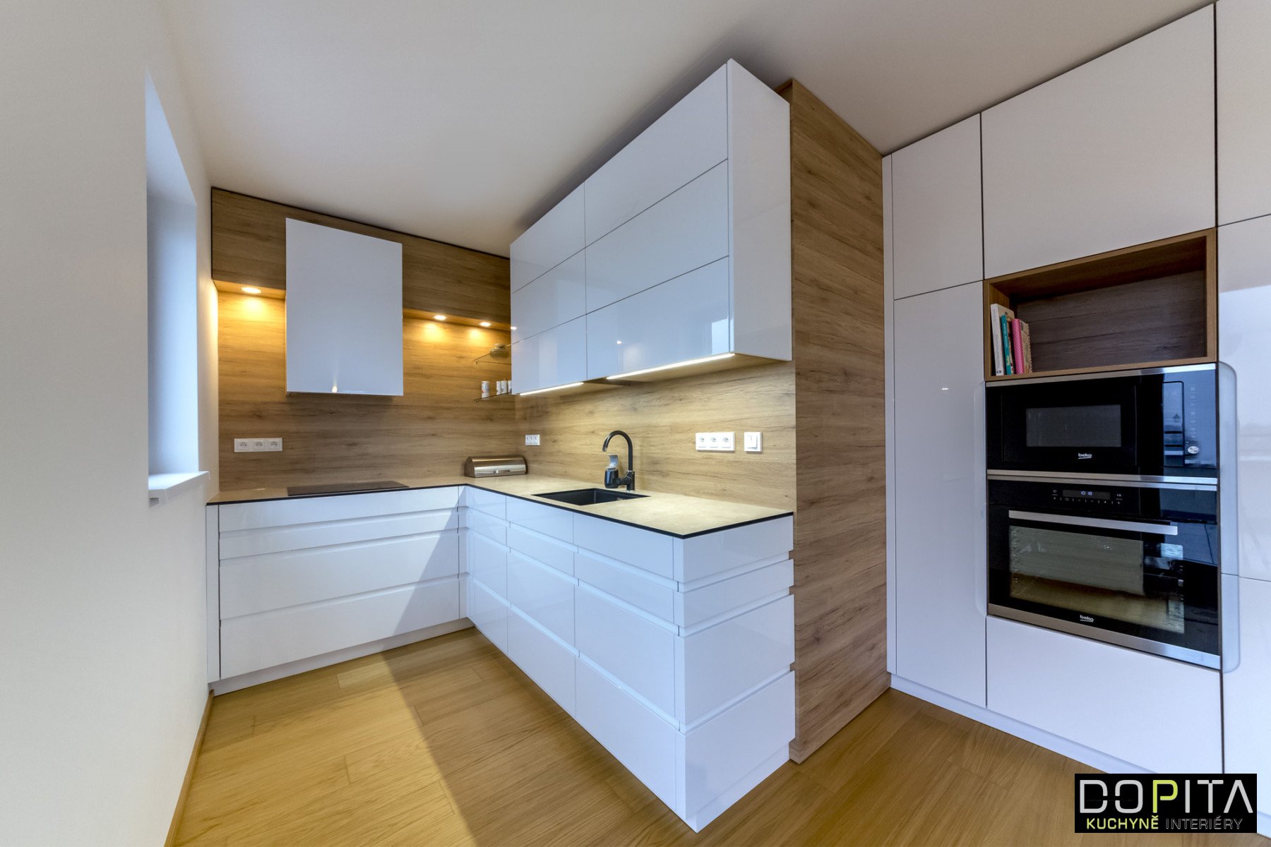 Кухня белая с деревом угловая