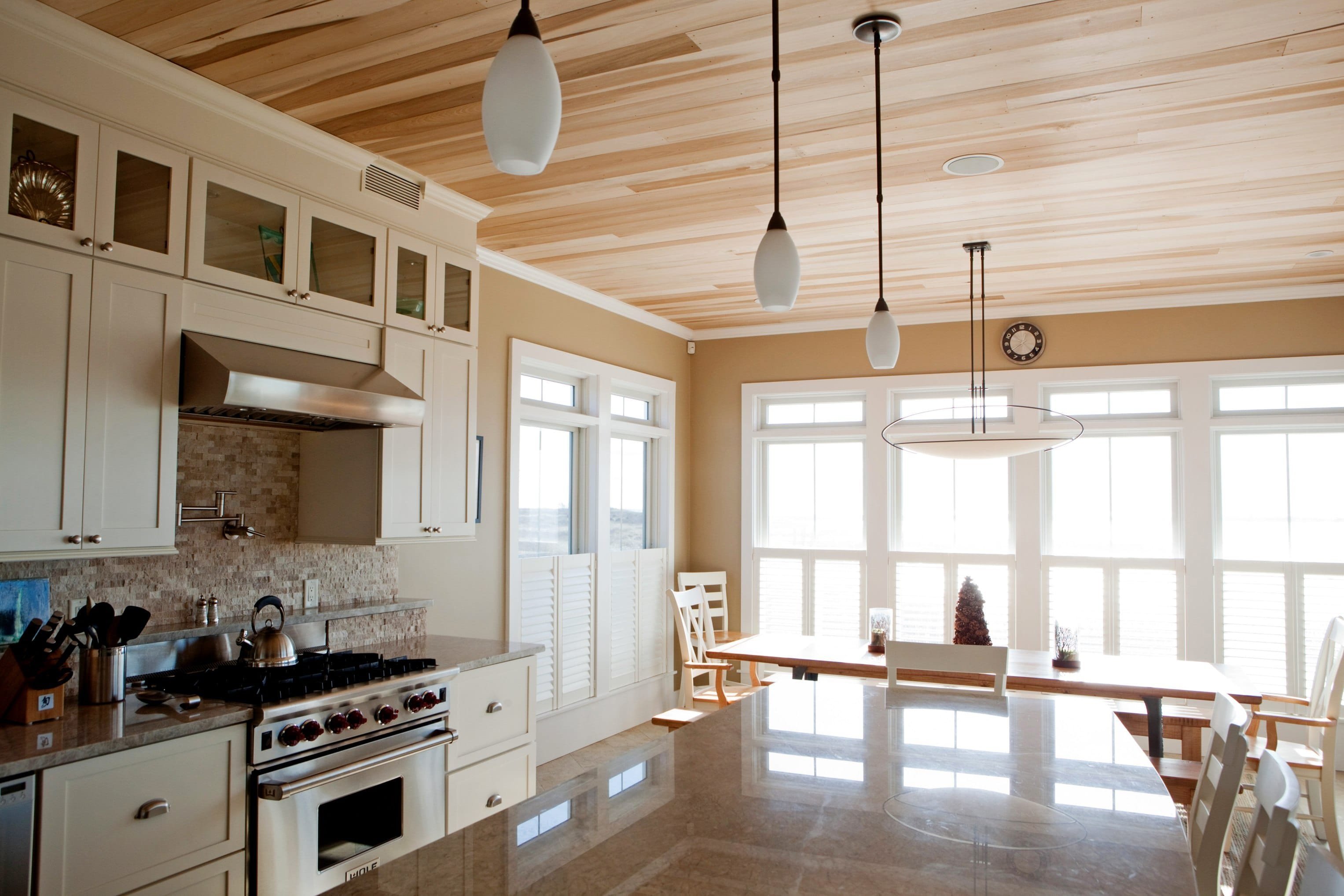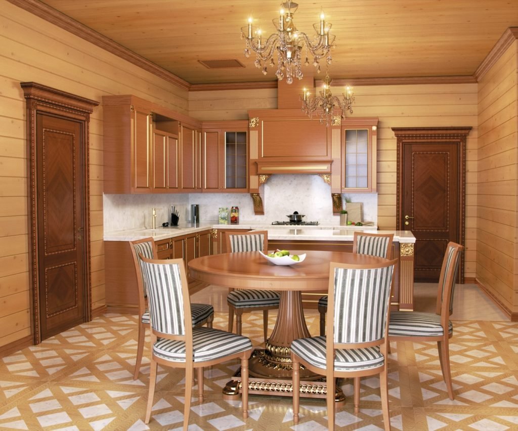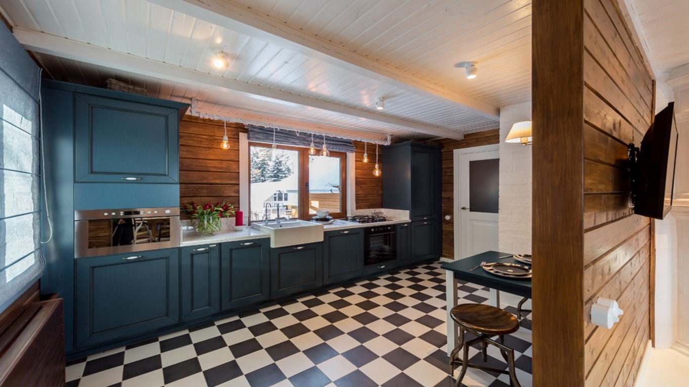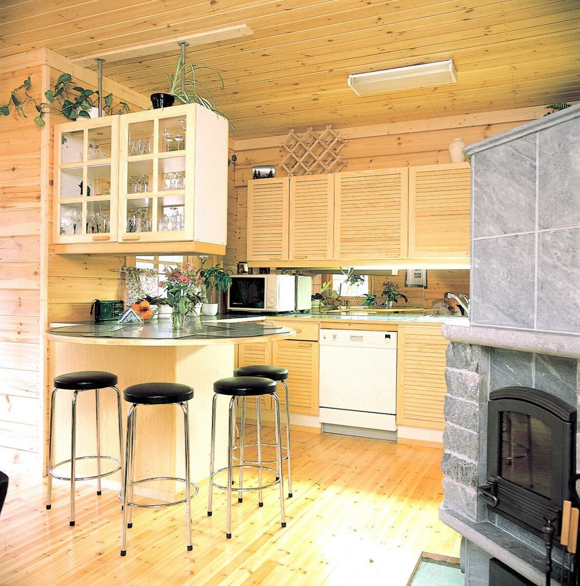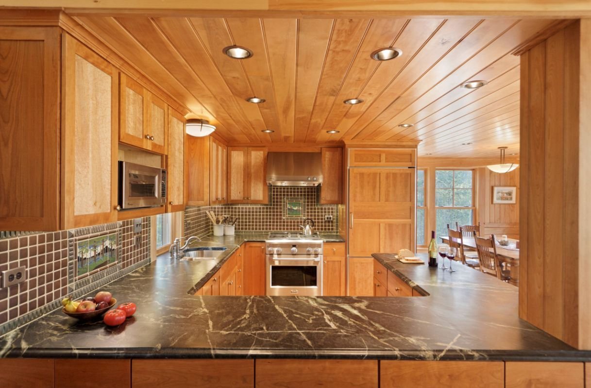Дизайн кухни из вагонки и мрамора в частном доме фото