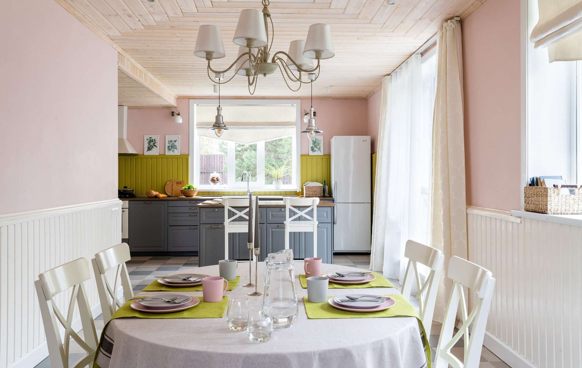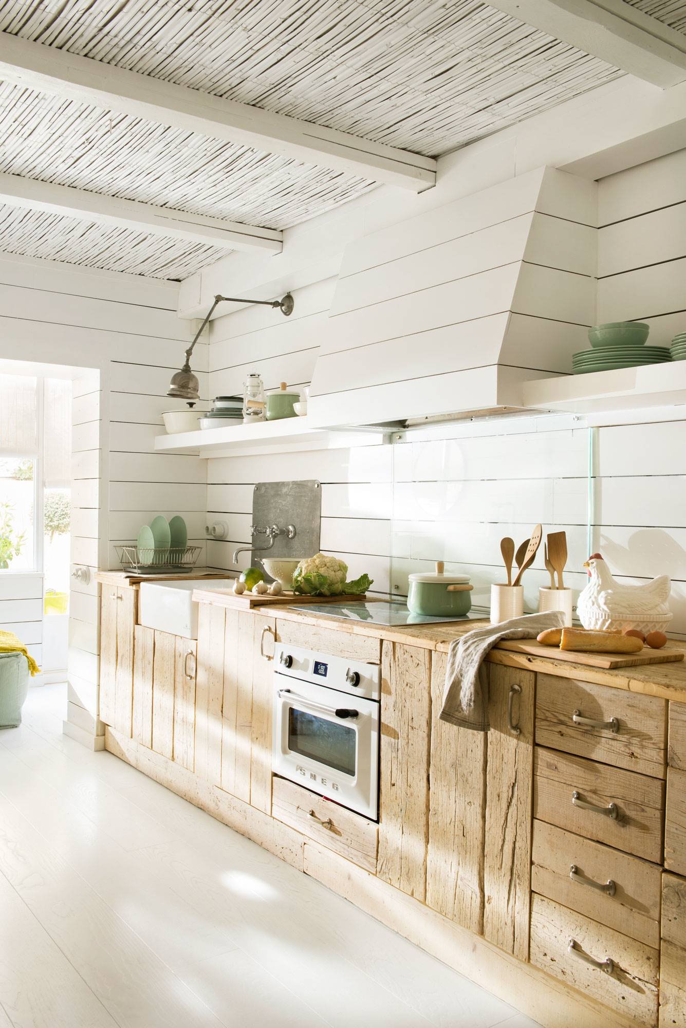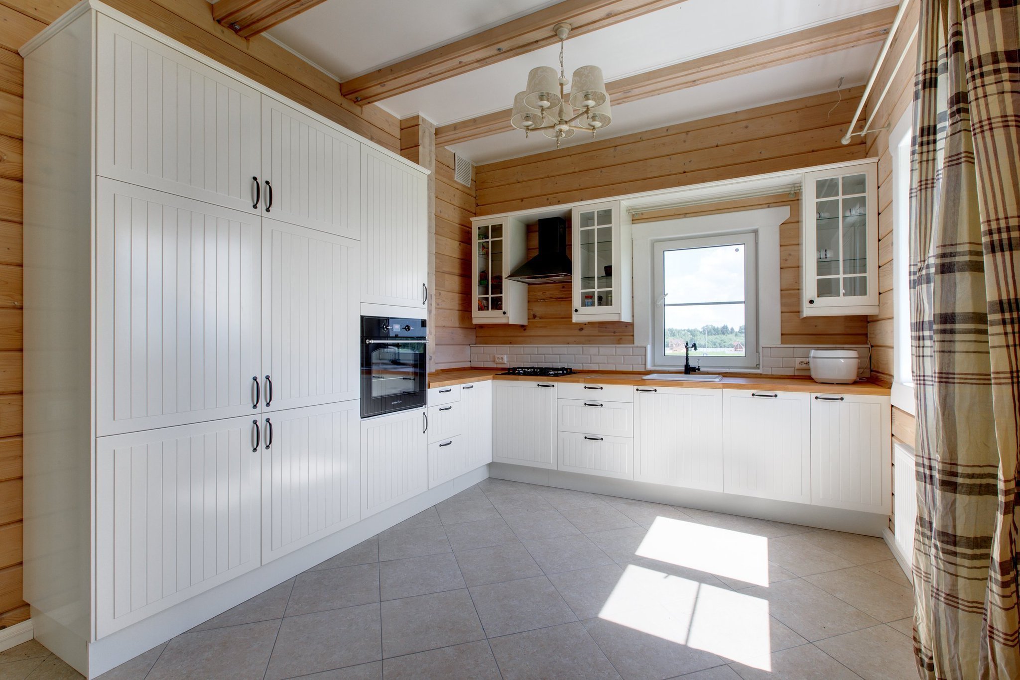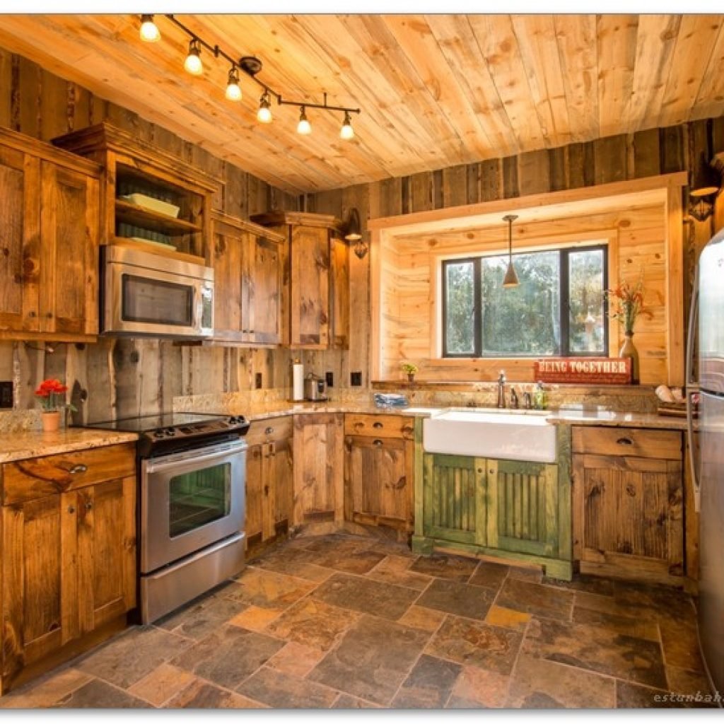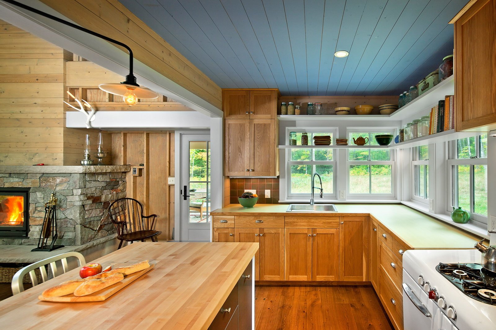 Дизайн кухни из вагонки и мрамора в частном доме фото