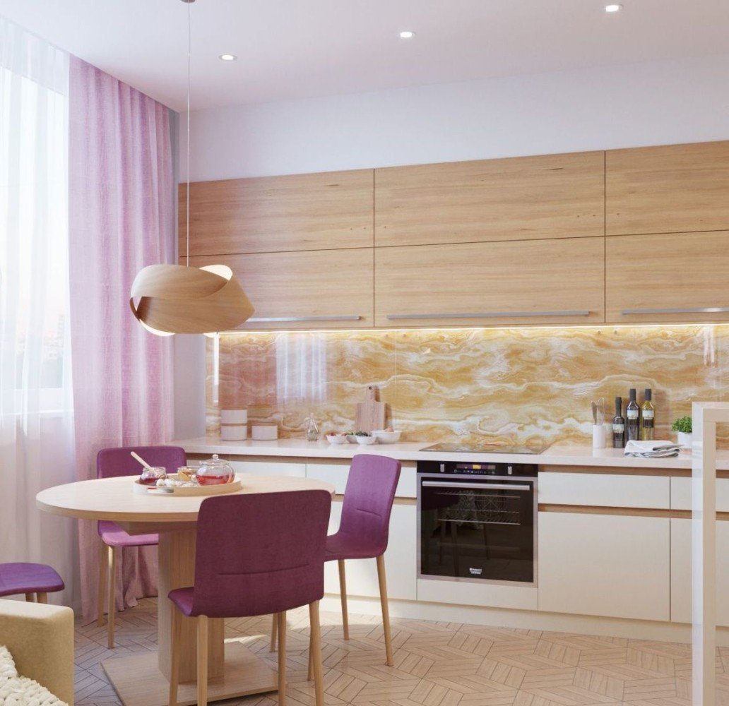 Светлые кухни со стеклянным фартуком
