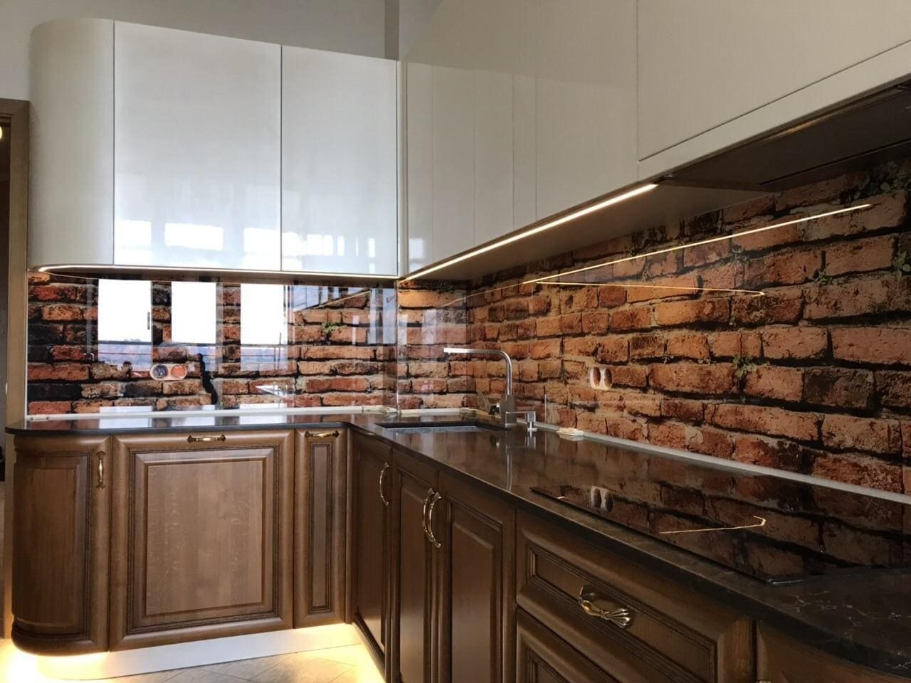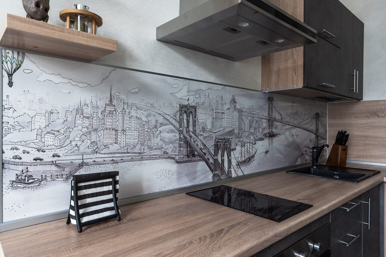 Фартук для кухни из стекла лофт