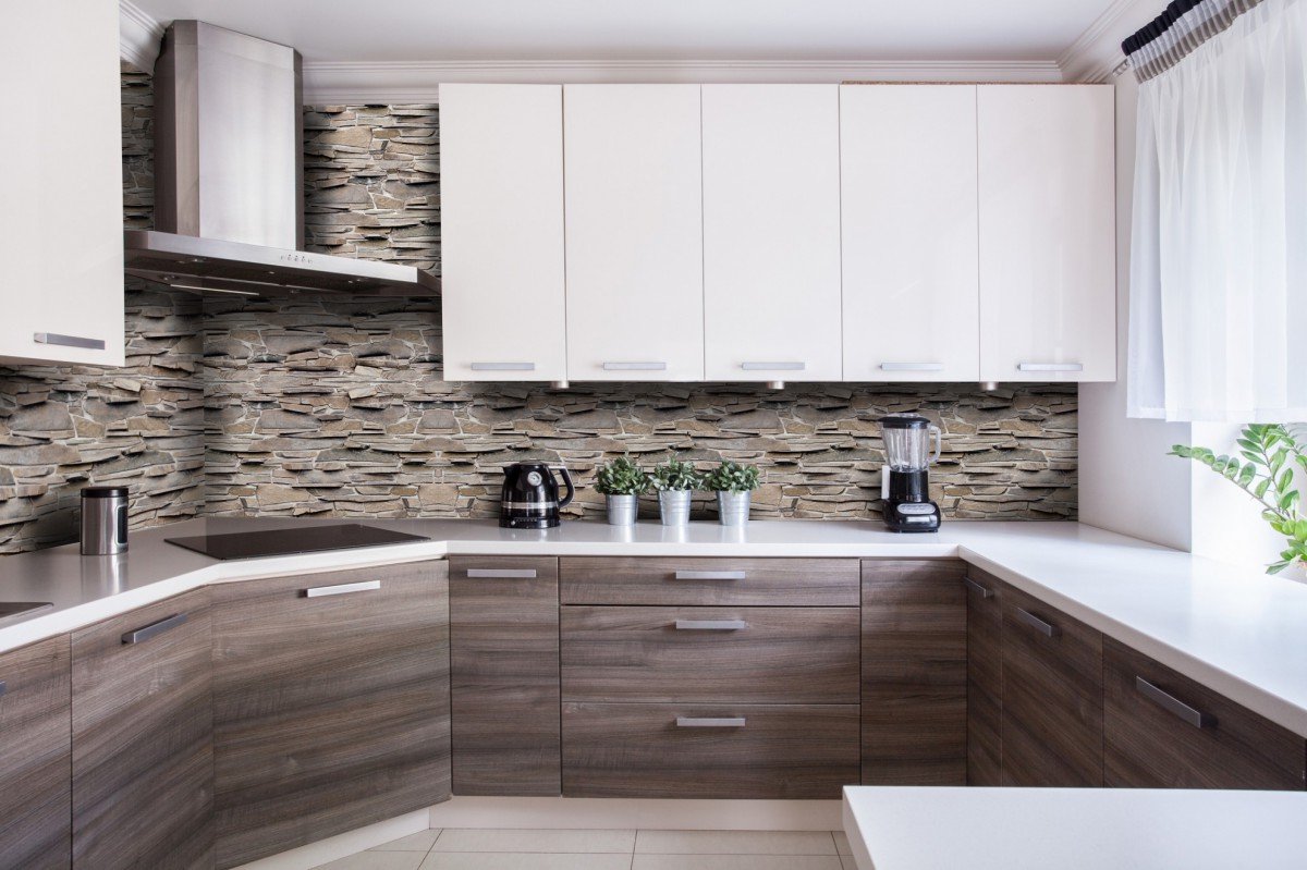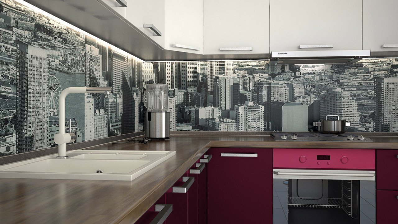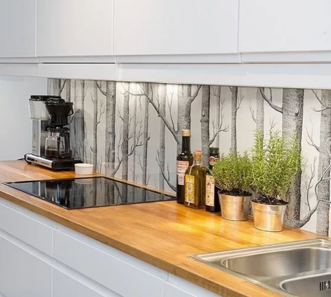 Фартук для кухни обои под стеклом
