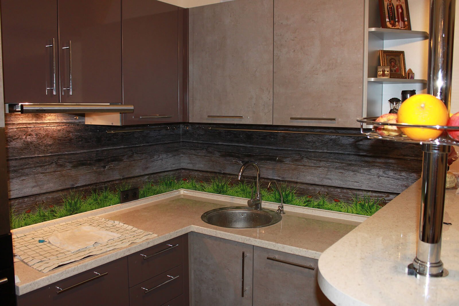 Кухонный фартук из стекла под дерево