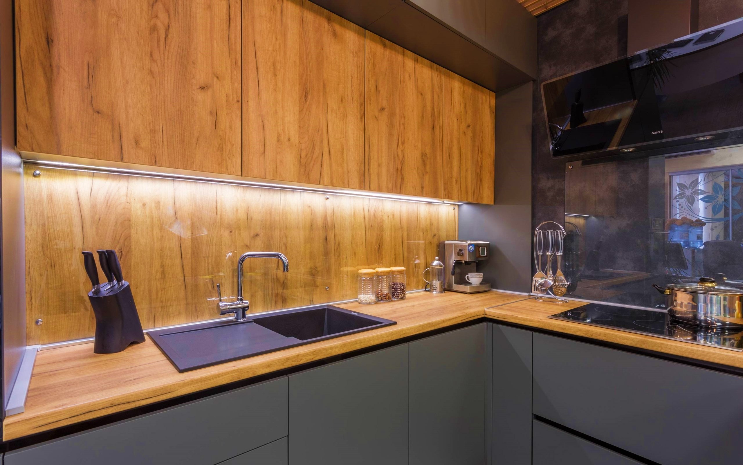 Стеклянный фартук для кухни под дерево