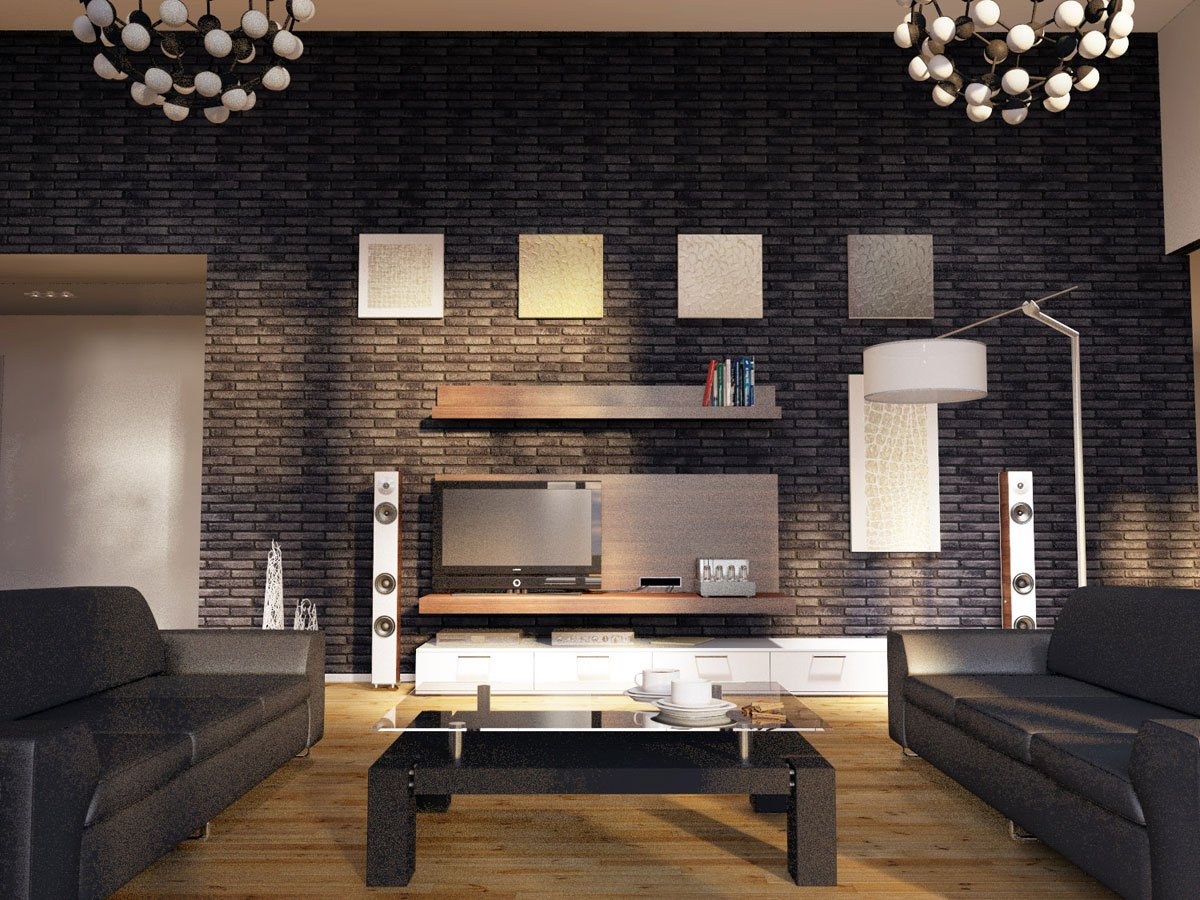 Черный кирпич в гостиной